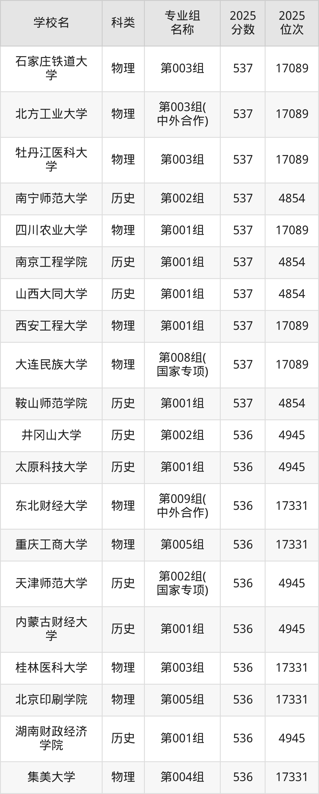 除上述院校外,539分可上的公办本科大学还有中国劳动关系学院(472分,位次75393名)、山东政法学院(467分,位次79930名)。
