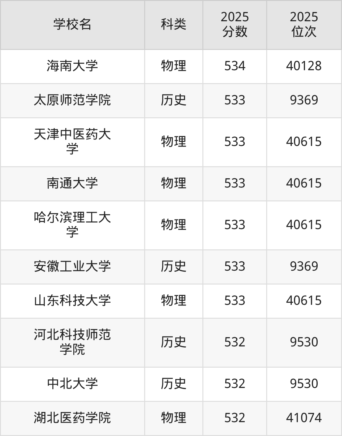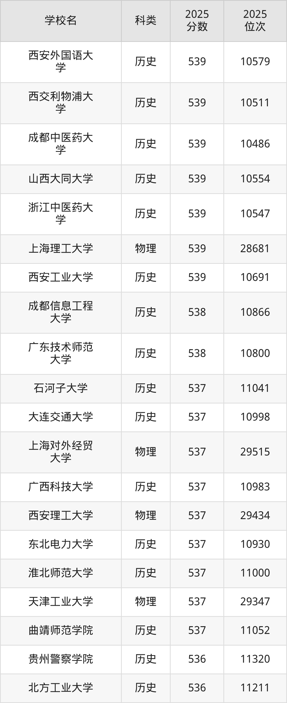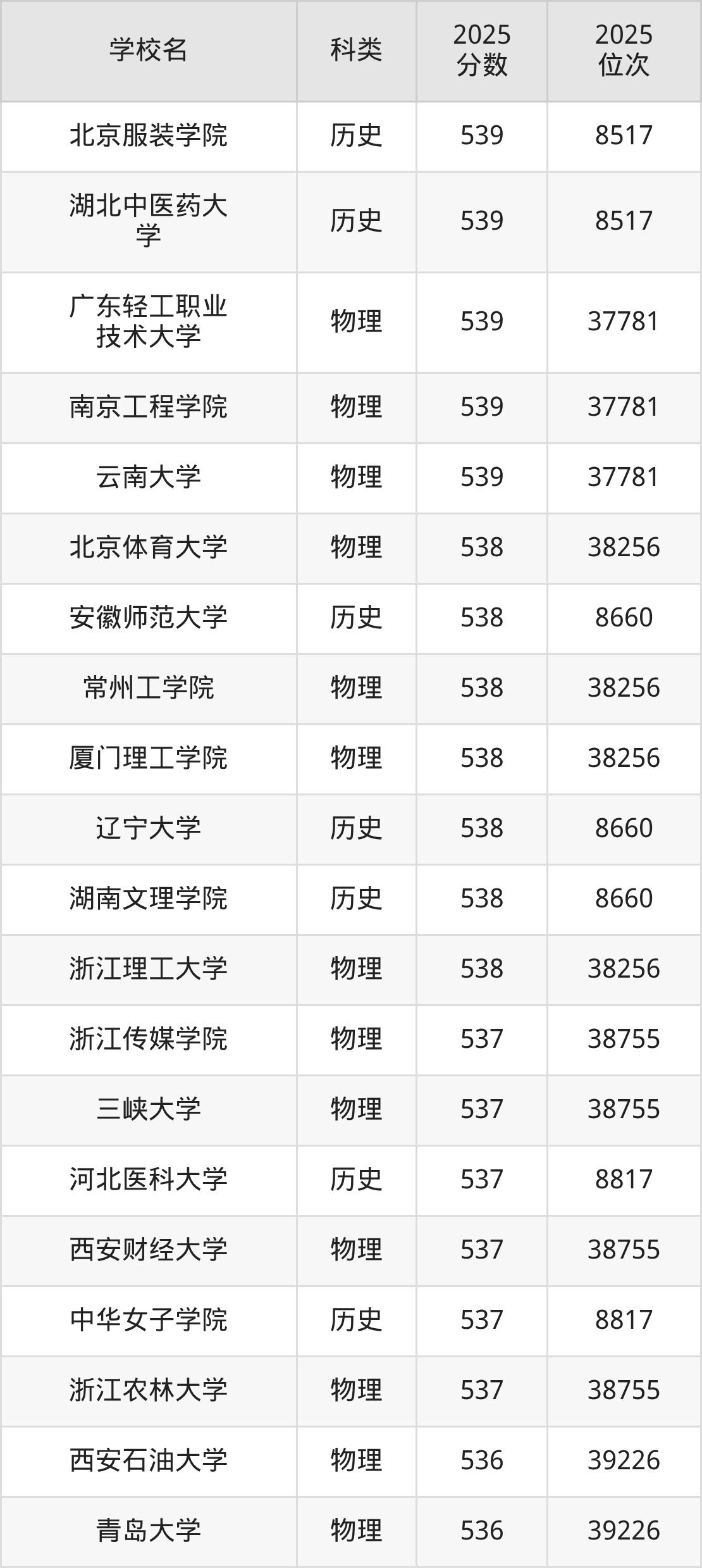 本文将收集各省539分能上的本科大学位次排名表(不含特殊招生计划、中外合作、分校区等),以供2026届考生参考。