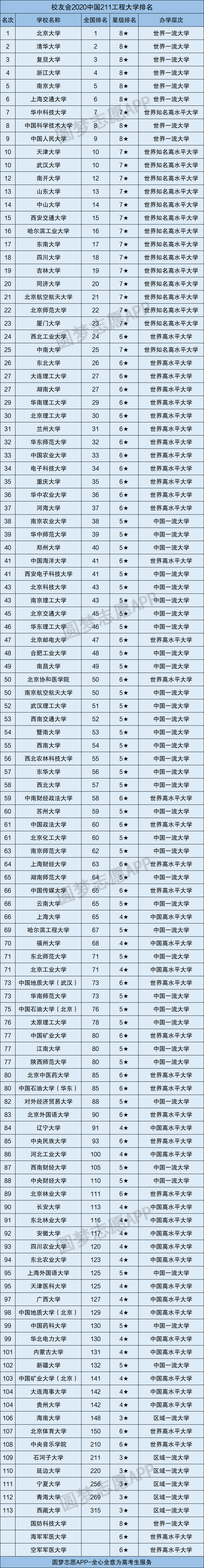 注意:鉴于我国名校数量庞大,小编仅为大家整理了985、211、双一流高校的排名情况。当然,国内还有一些小211高校和其他一本院校都还是很不错的。如果你需要了解更多中国各类大学的录取分数线及位次排名 ,可以在手机应用市场下载圆梦志愿APP,直接获取招录数据。