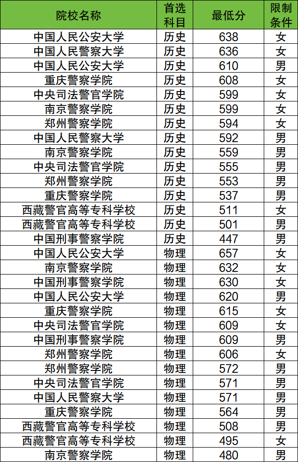 历史类最低分:447分(中国刑事警察学院)。