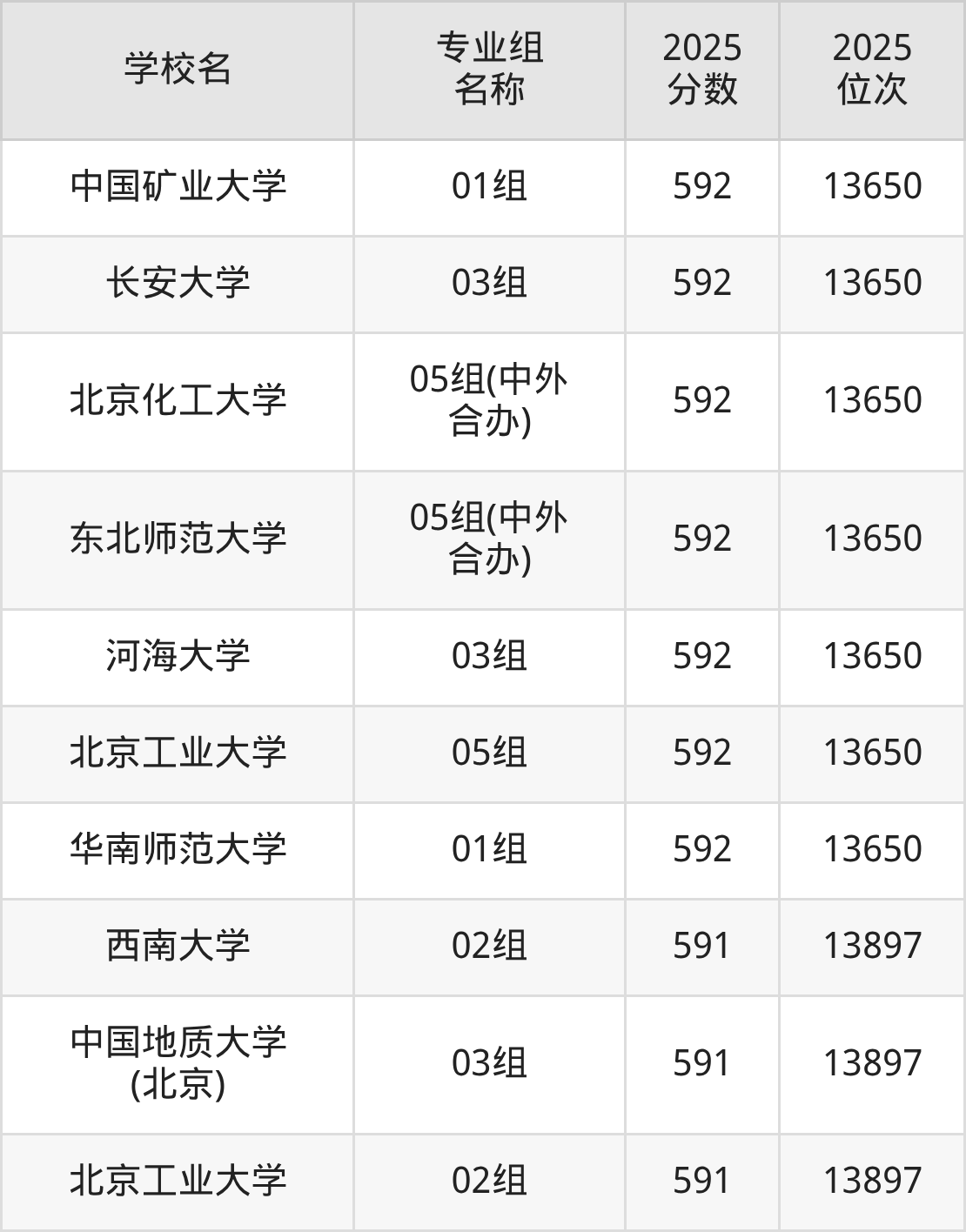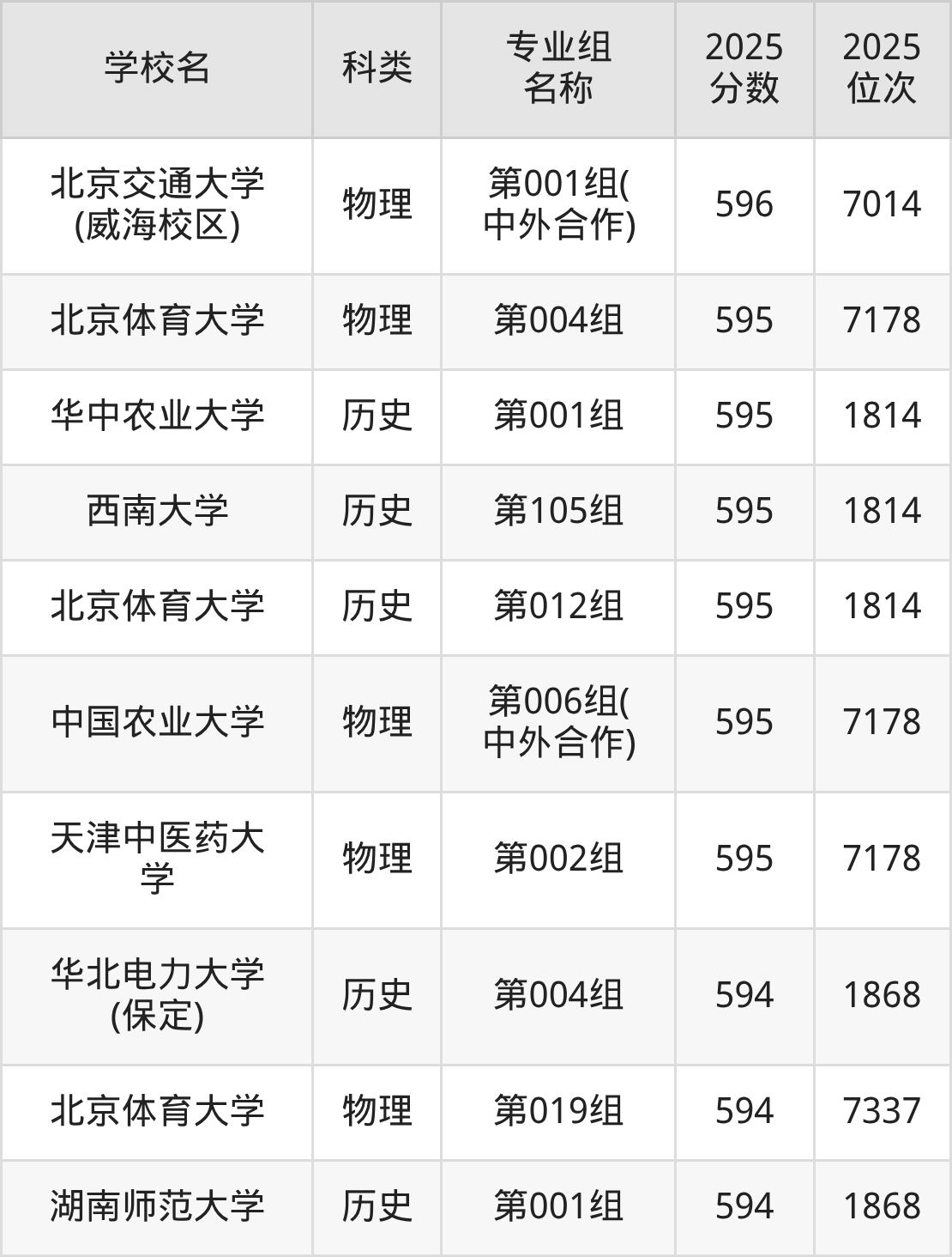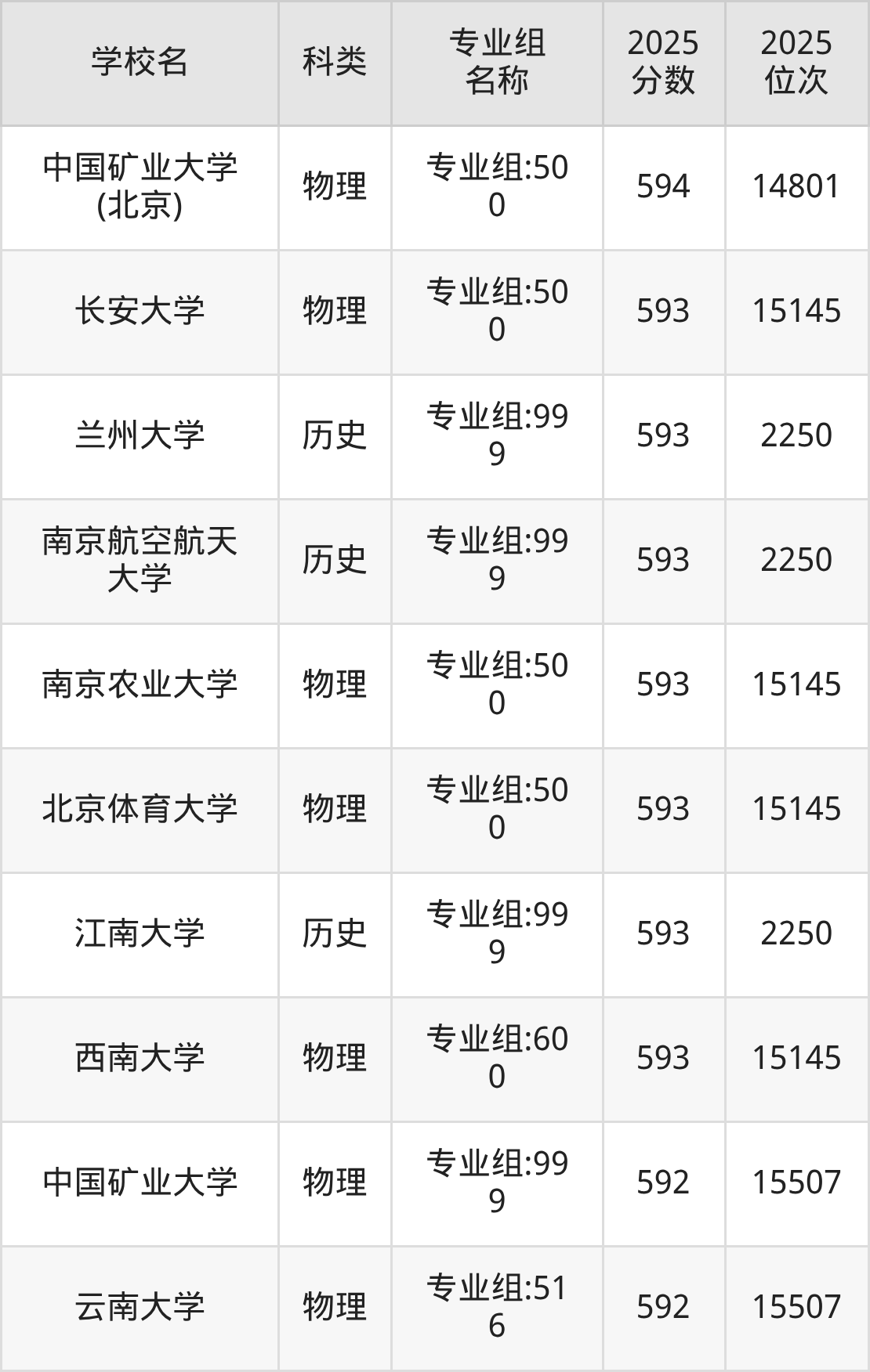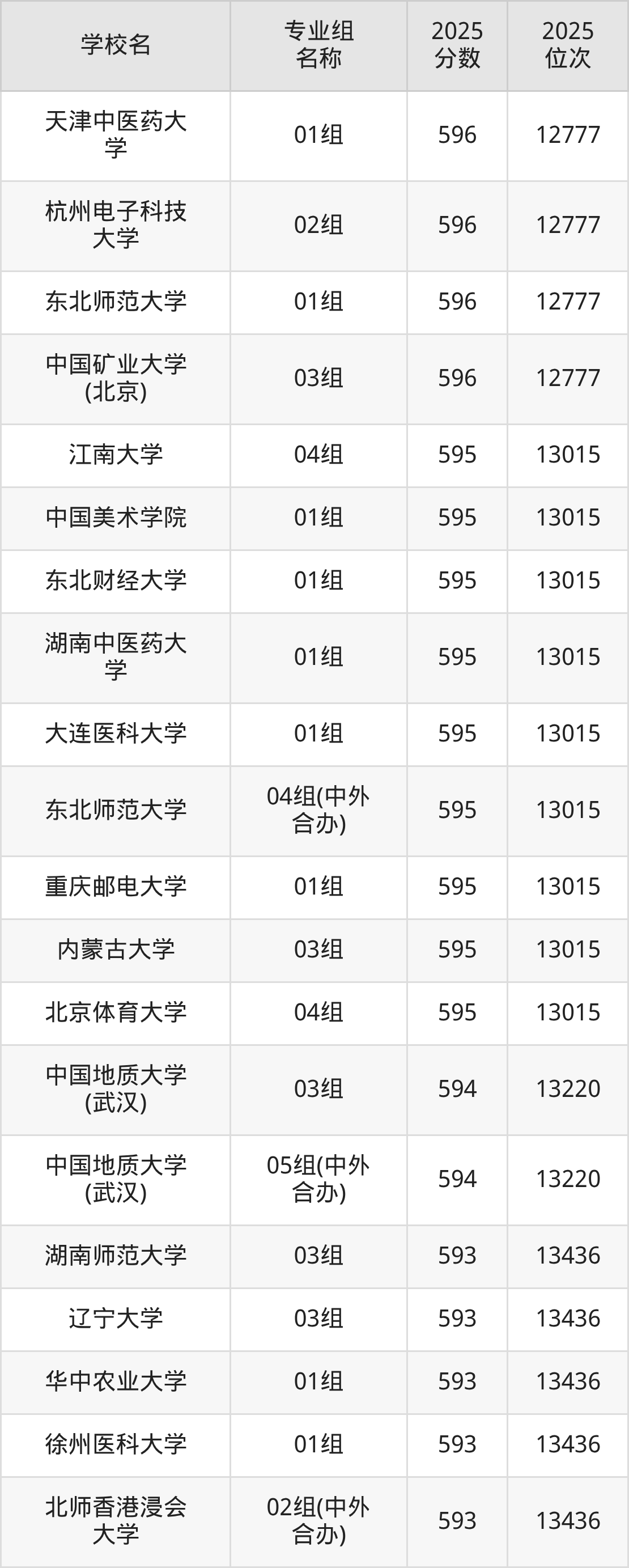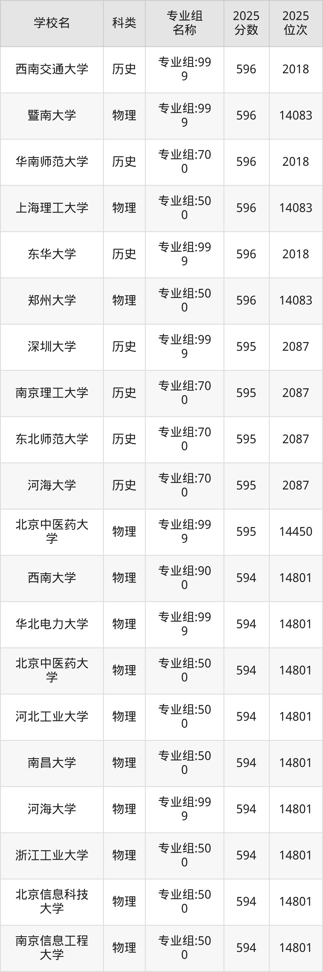 除上述院校外,599分可上的公办一本大学还有宁夏大学(第008组565分,位次12932名)、云南大学(第006组557分,位次14710名)。