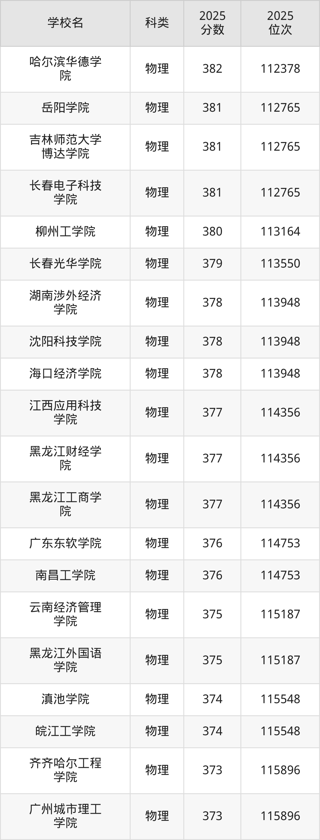 2025年黑龙江物理类本科线为360分,382分能上的本科大学共计175所,其中公办大学录取位次排名最低的是桂林旅游学院(第006组(中外合作)360分),其2025最低位次为85313名。