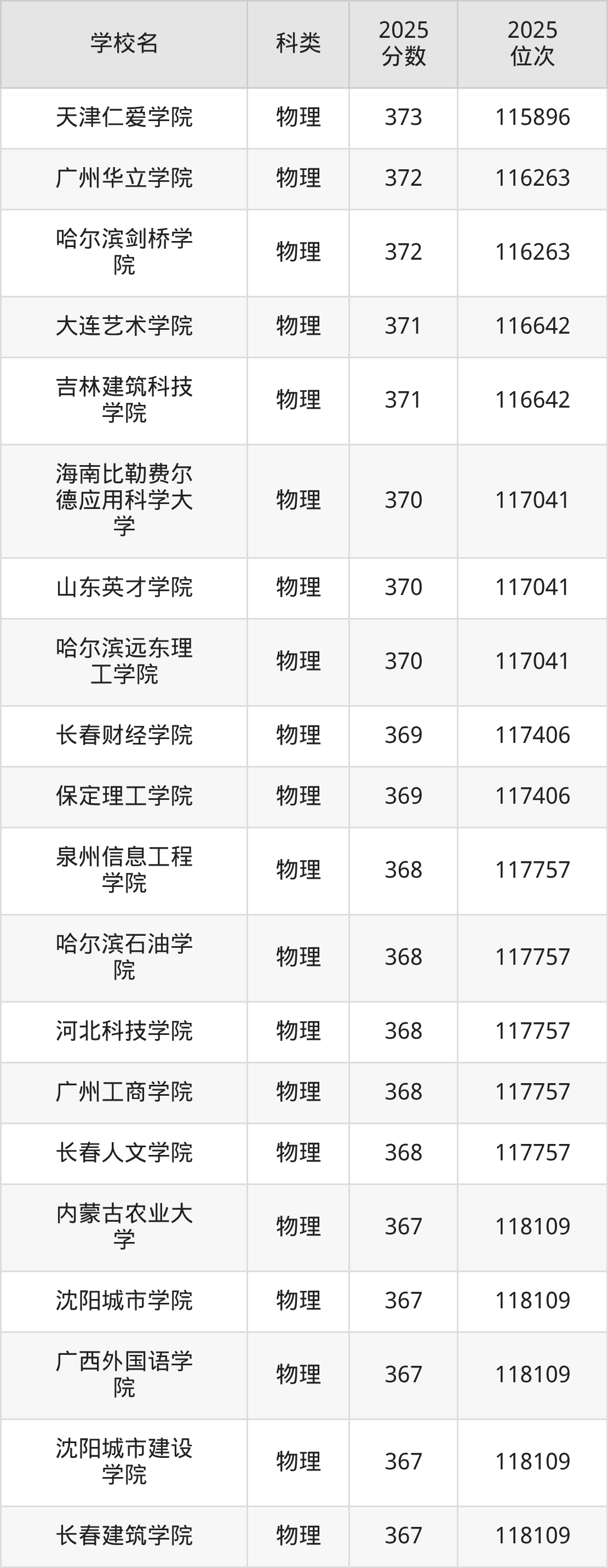 而民办大学录取位次排名最低的是保定理工学院(360分),其2025最低位次为85313名。
