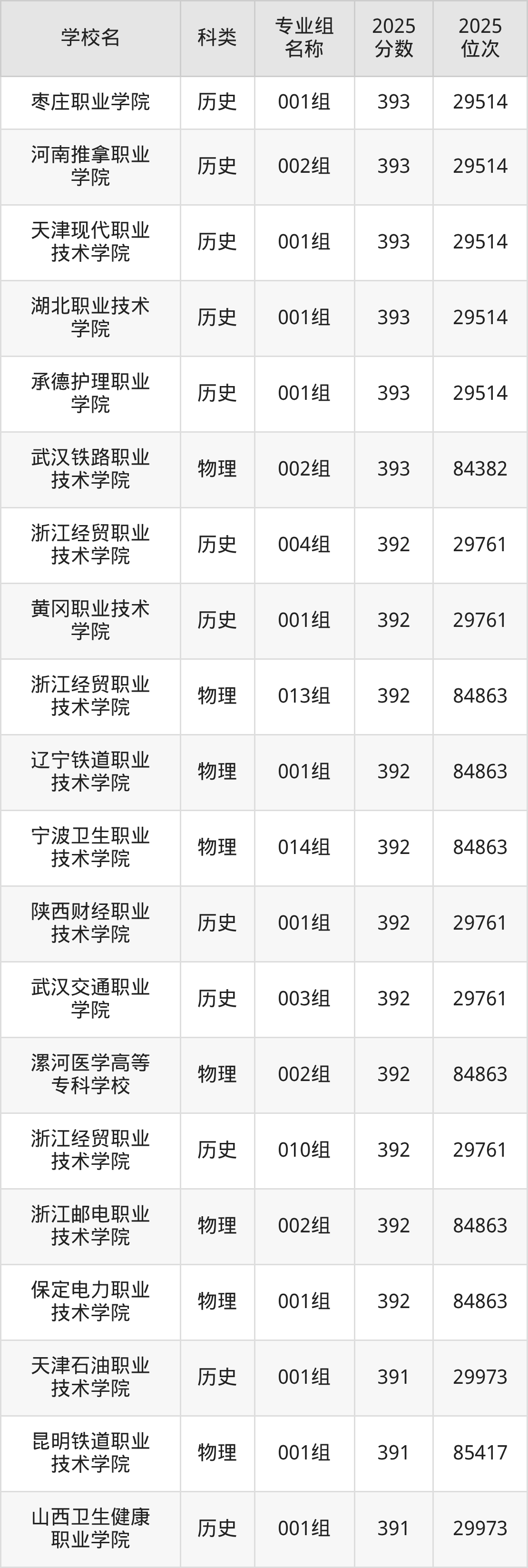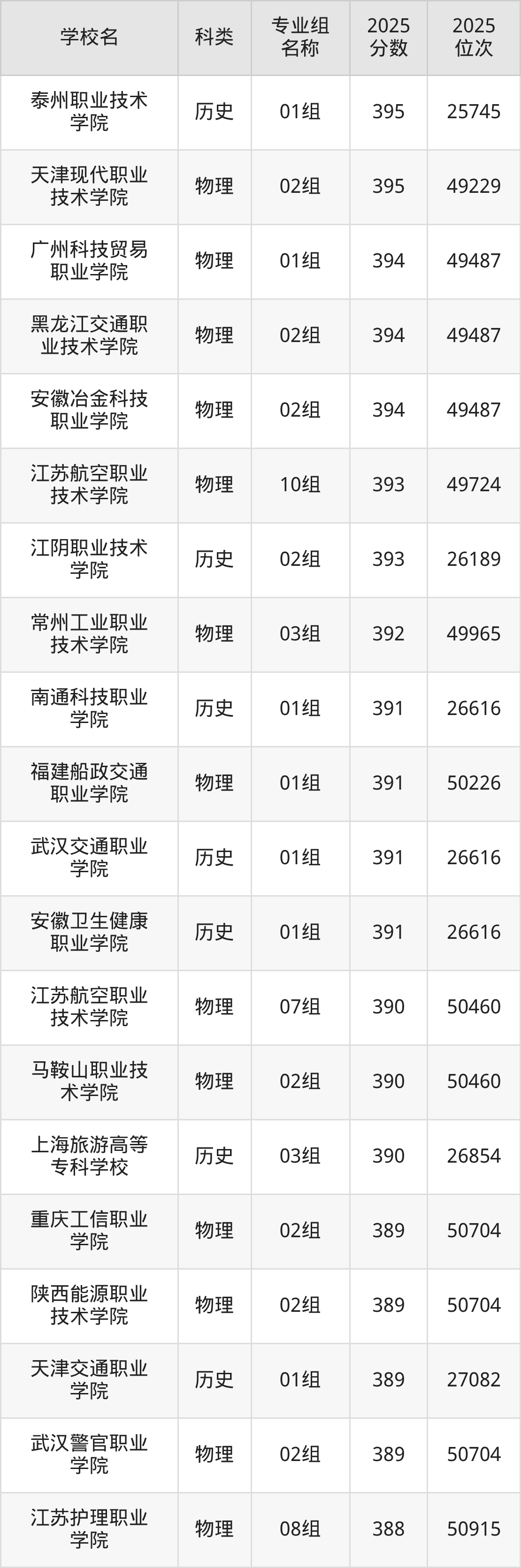 本文将收集各省395分能上的专科学校位次排名表(不含特殊招生计划、中外合作、分校区等),以供2026届考生参考。