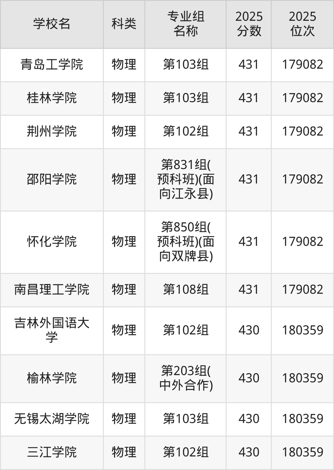 2025年湖南物理类本科线为405分,433分能上的本科大学共计156所,其中公办大学录取位次排名最低的是桂林医科大学(第215组(中外合作)406分),其2025最低位次为210303名。