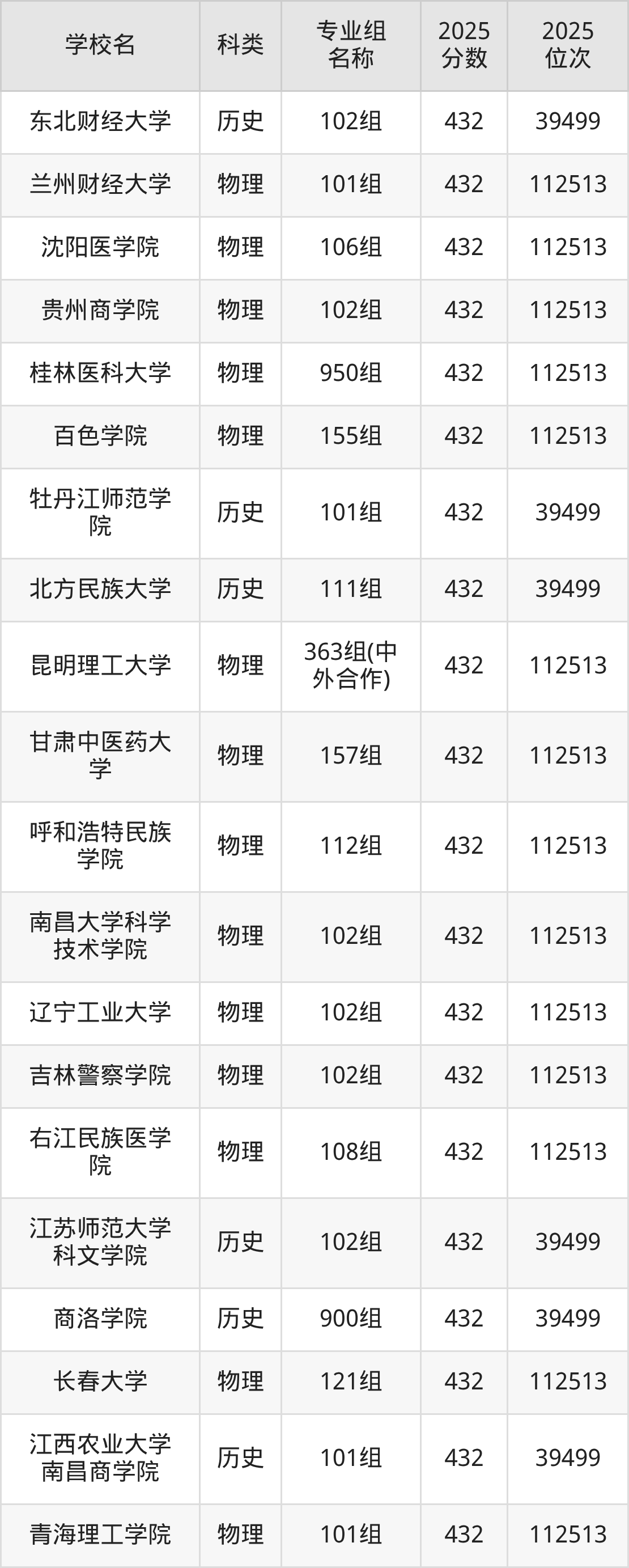 除上述院校外,433分可上的公办本科大学还有沈阳药科大学(153组430分,位次114422名)、长春大学(112组423分,位次121395名)。