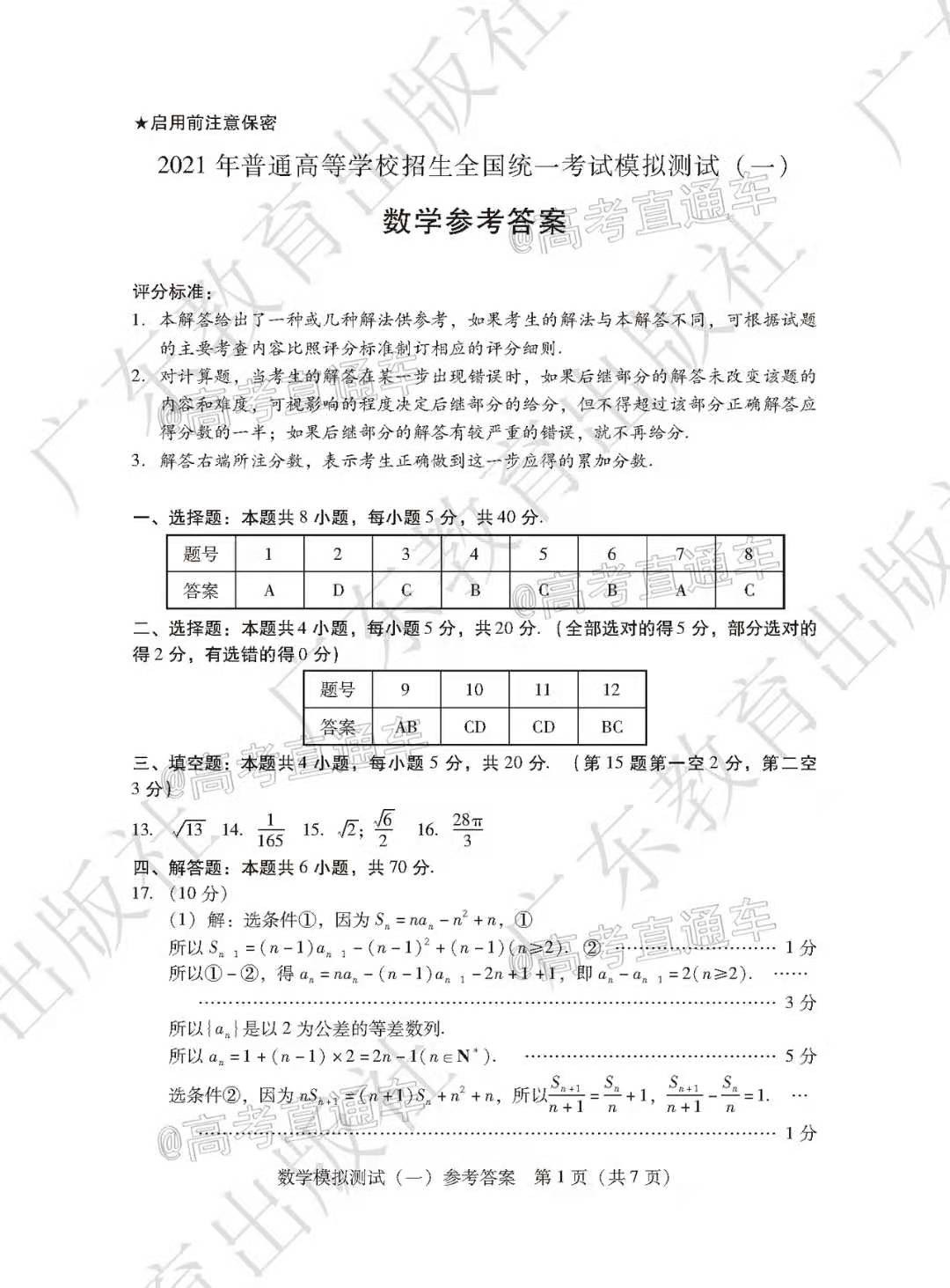 2021年广东一模数学考试已结束,相信刚刚结束考试的同学们也急切的需要考试题目或答案,以便于在考试结束后核对各题的正确度以及最终成绩分数。本文则将为大家提供这份考试的参考资料,以供参加考试的同学们查阅和对比。