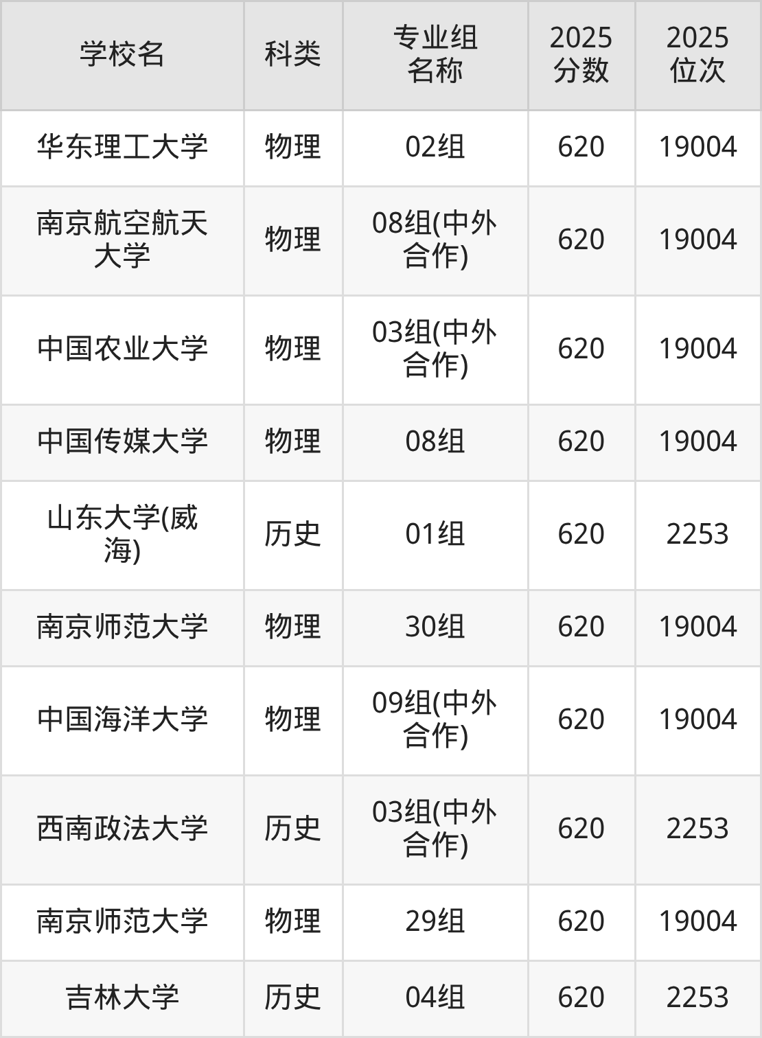 2025年吉林物理类本科线为340分,624分能上的本科大学共计857所,其中公办大学录取位次排名最低的是聊城大学(第004组(中外合作)340分,位次69405名),即代表考生省排名位次在69405名及以内就可以报考公办本科。
