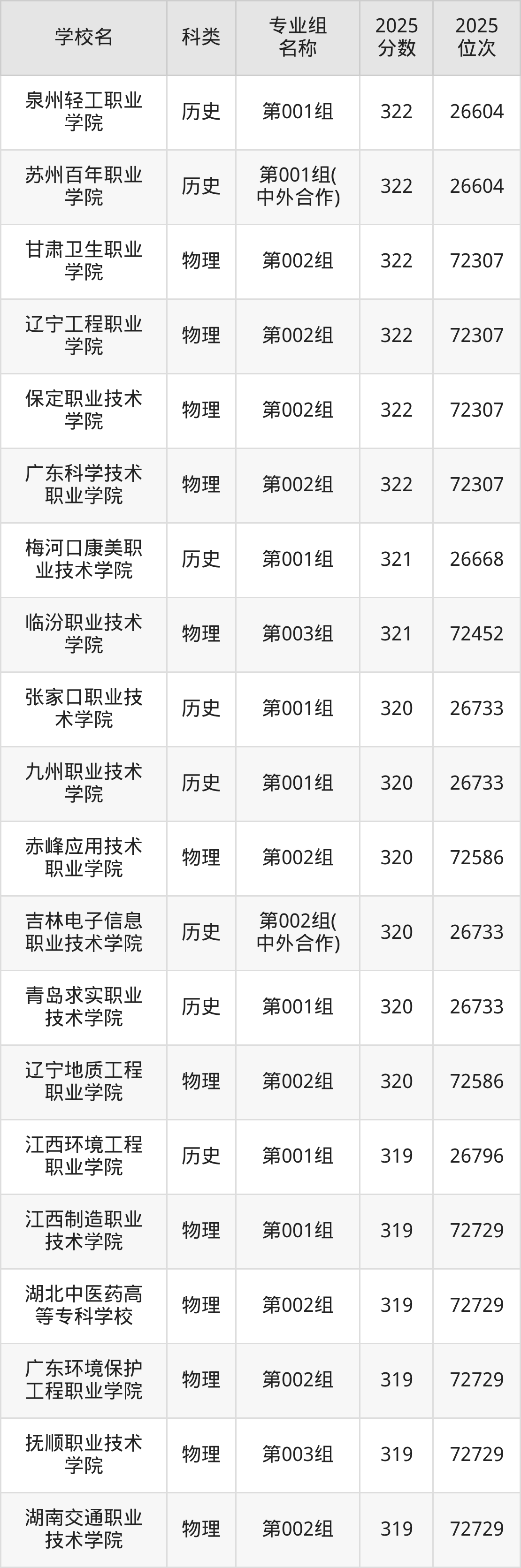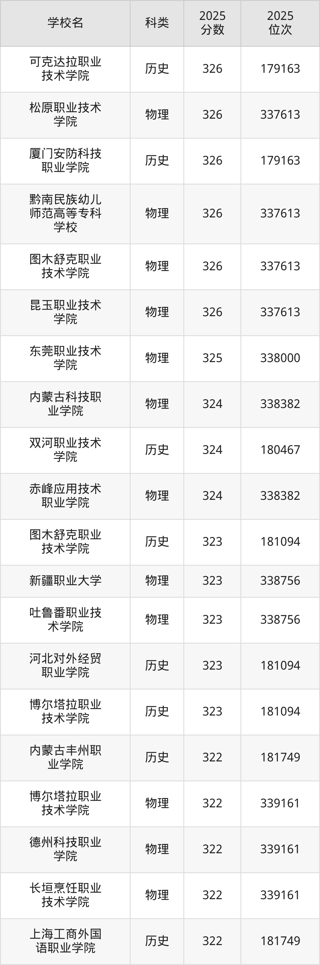 本文将收集各省326分能上的专科学校位次排名表(不含特殊招生计划、中外合作、分校区等),以供2026届考生参考。