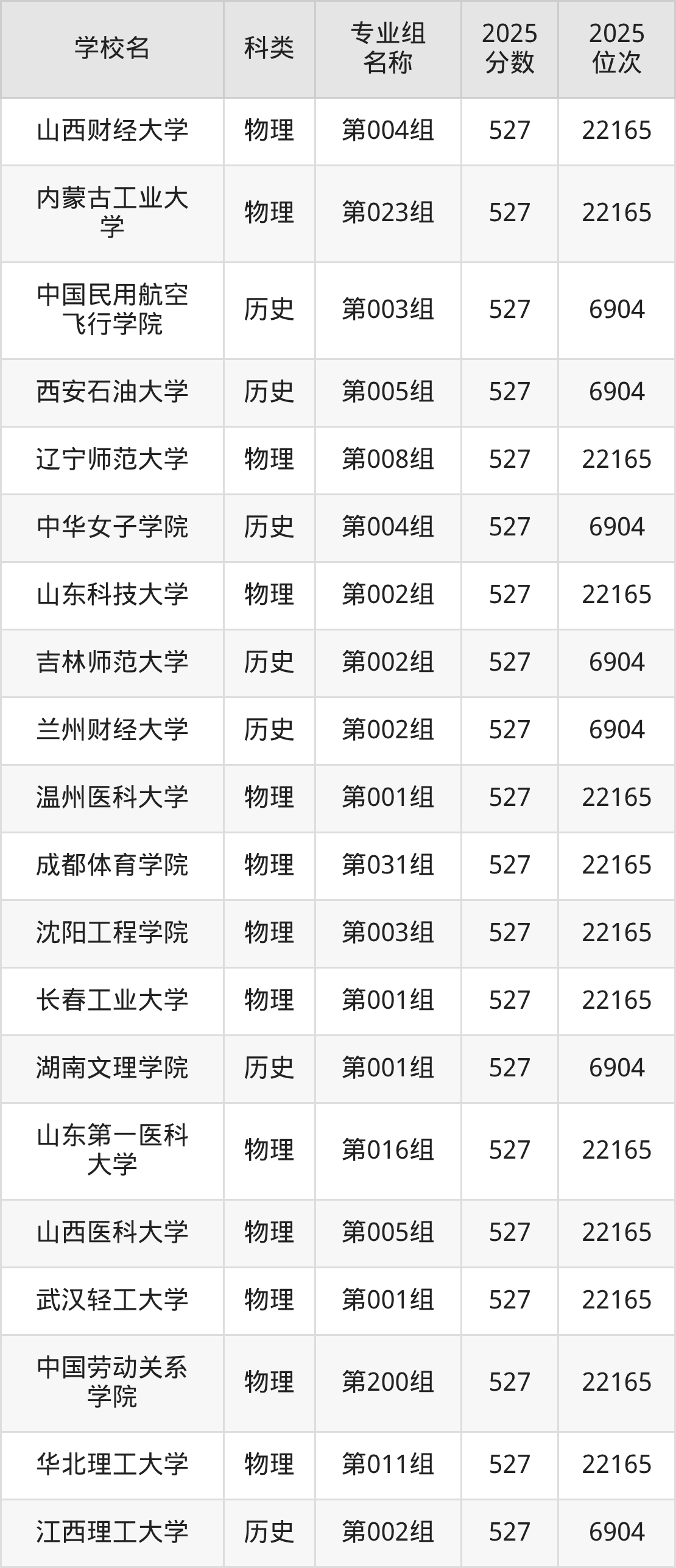 除上述院校外,528分可上的公办本科大学还有山西中医药大学(02组453分,位次37376名)、淮南师范学院(01组447分,位次38962名)。