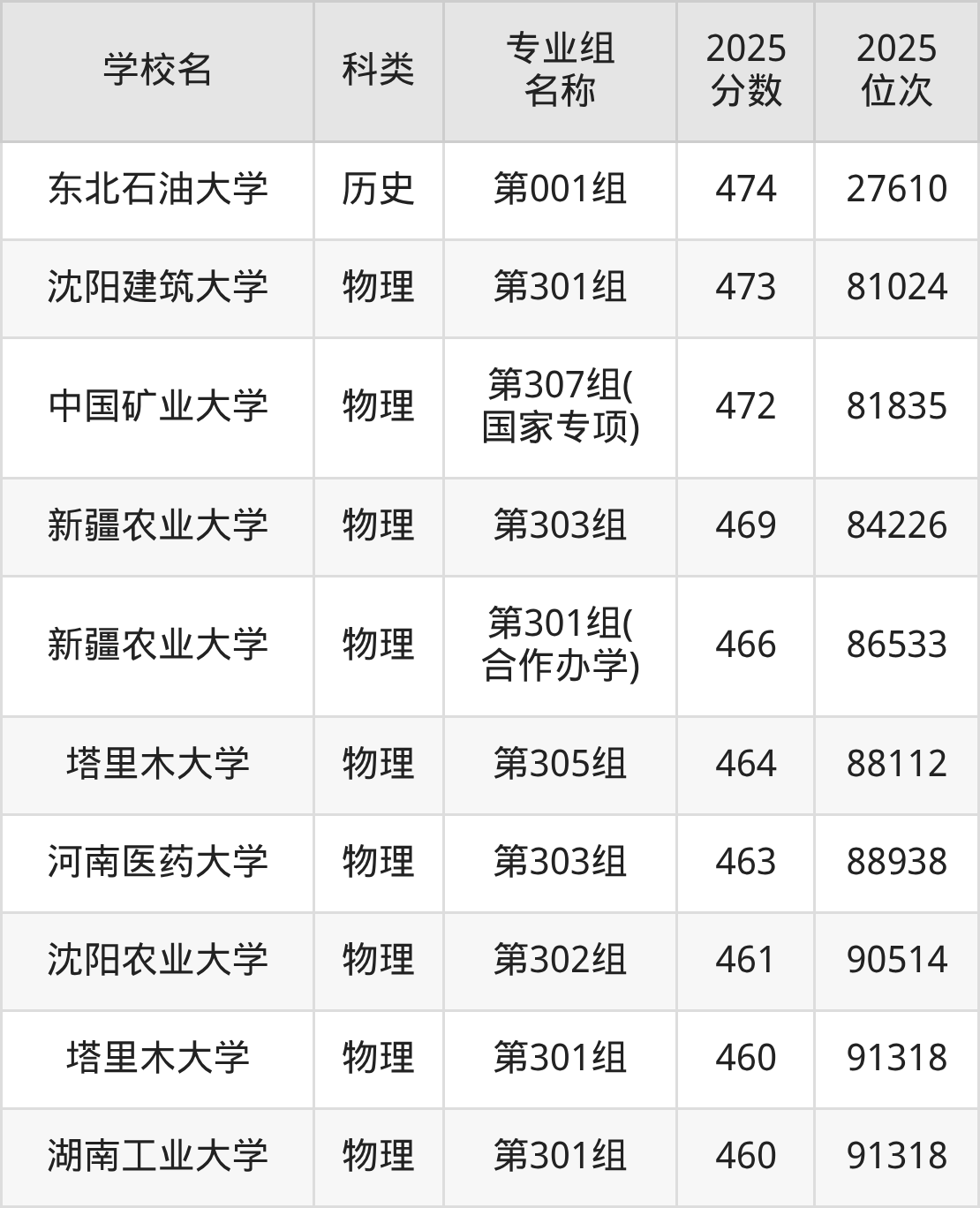 录取位次排名较低的公办一本大学还有塔里木大学(位次92858名)、湖南工业大学(位次91318名)、东北石油大学(位次91318名)等,适合省排名在9.1万名开外的本科生报考。