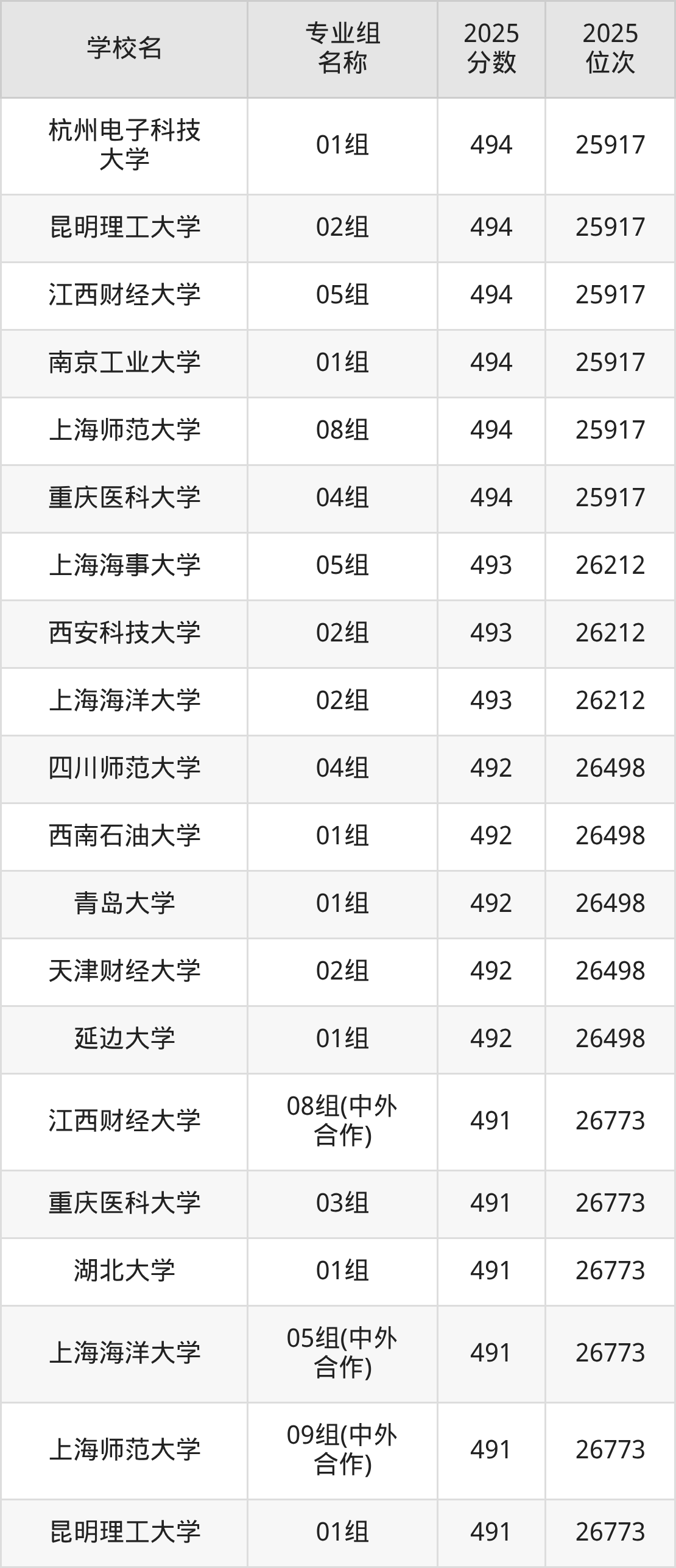 2025年上海本科线为402分,498分能上的一本大学共计108所,其中公办大学录取位次排名最低的是塔里木大学(01组411分,位次47401名),即代表考生市排名位次在47401名及以内就可以报考公办本科。