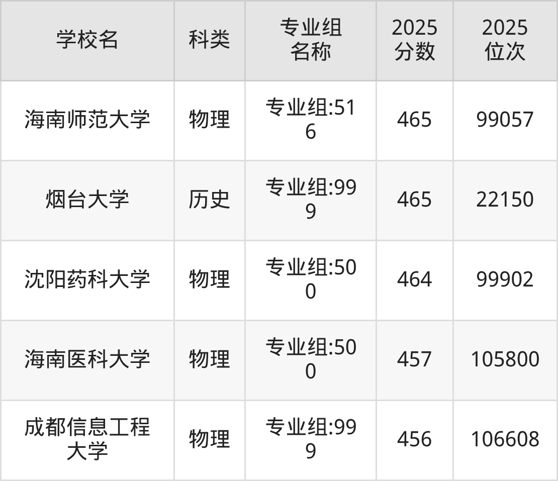 除上述院校外,468分可上的公办一本大学还有大连外国语大学(461分,位次86172名)、东华理工大学(454分,位次92527名)。
