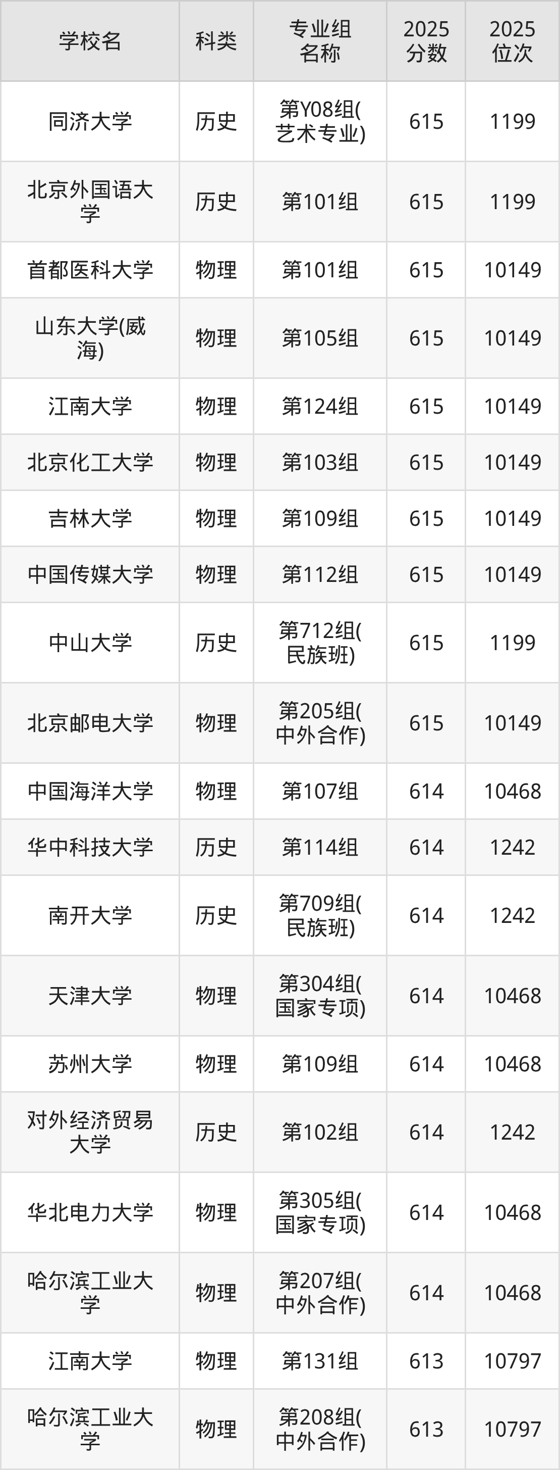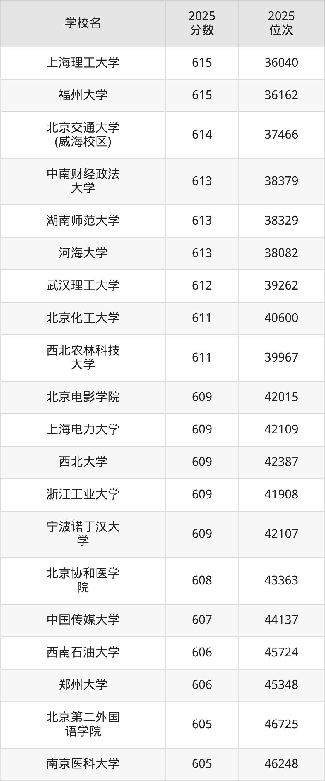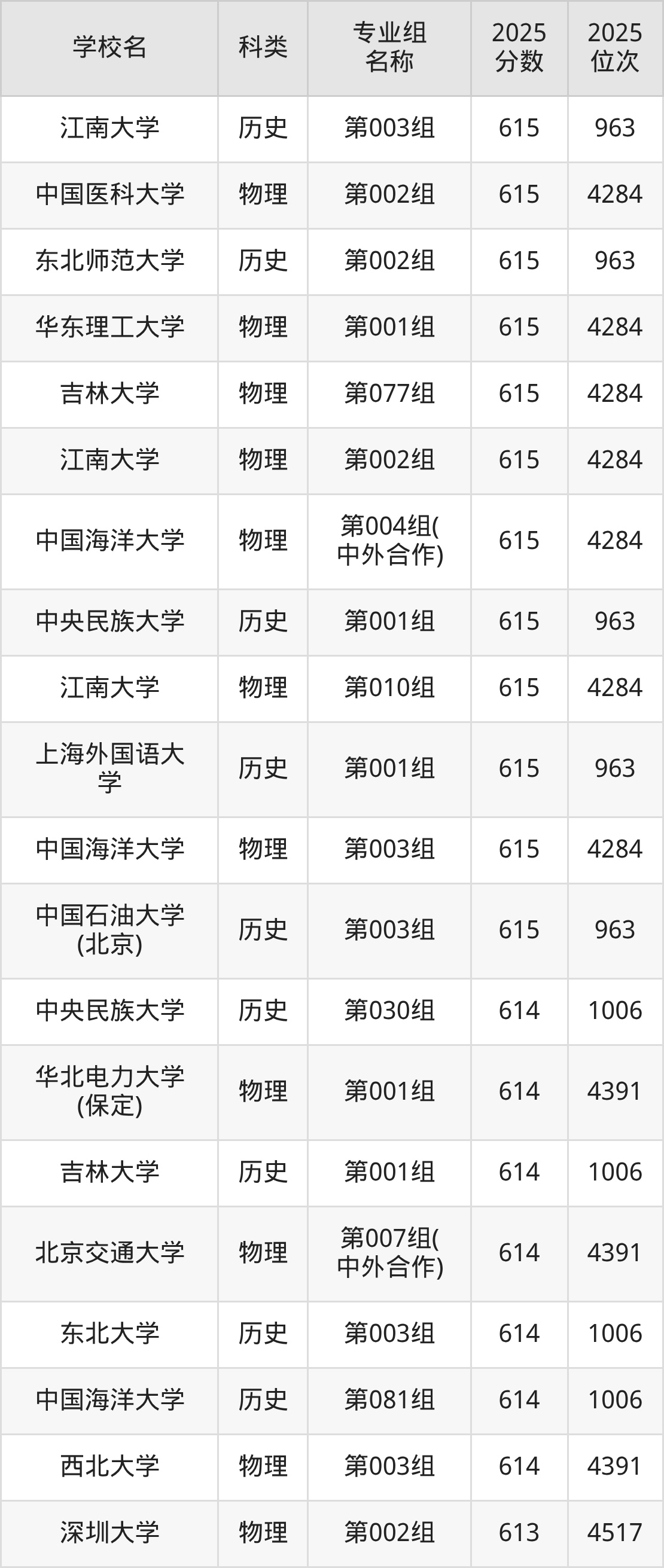 本文将收集各省615分能上的本科大学位次排名表(不含特殊招生计划、中外合作、分校区等),以供2026届考生参考。