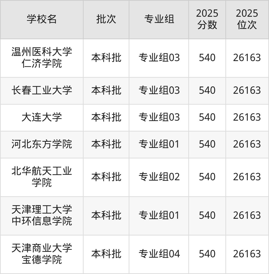这些都是2026年高考25619名~25879名考生可以报考的大学,更多学校名单如下表所示: