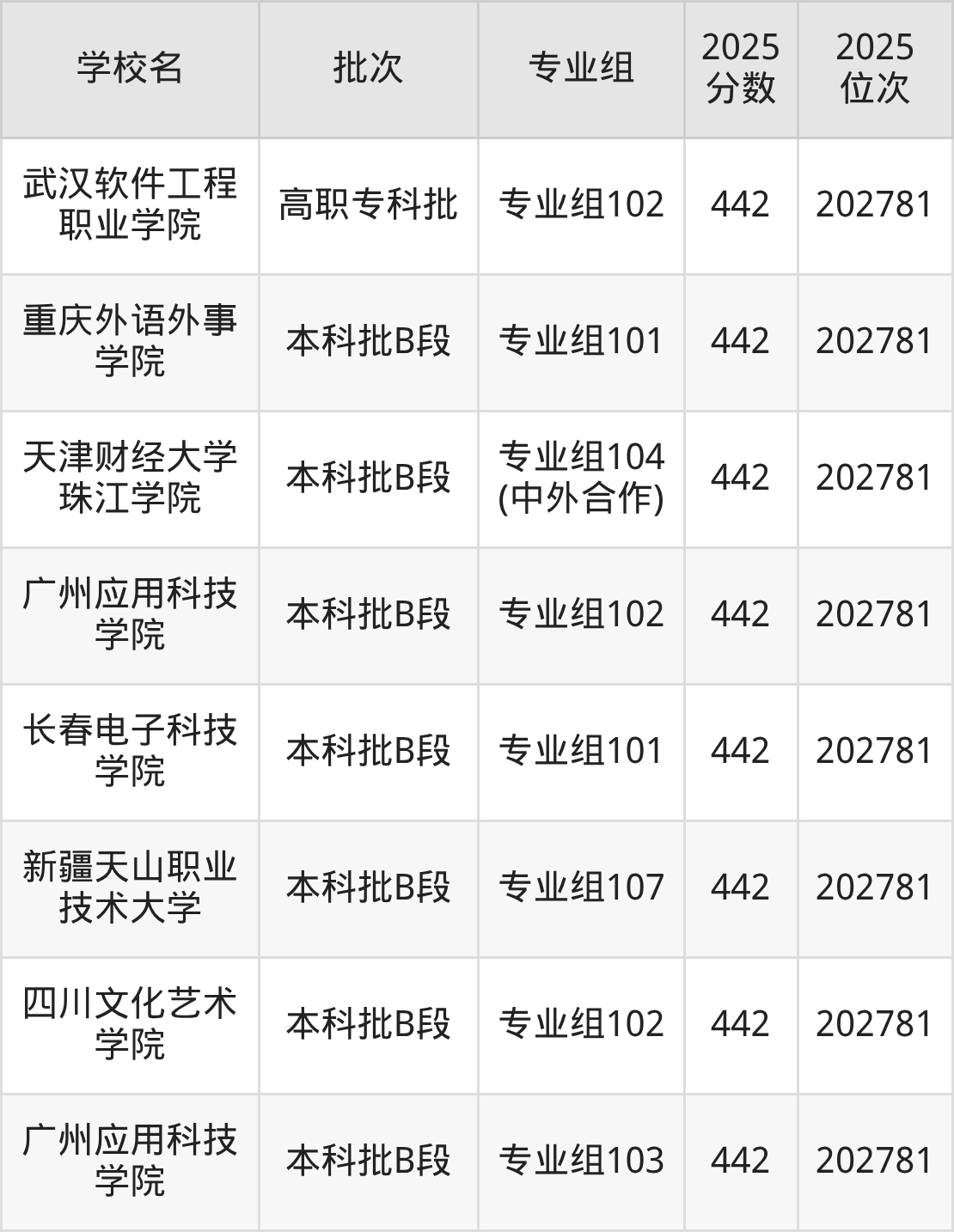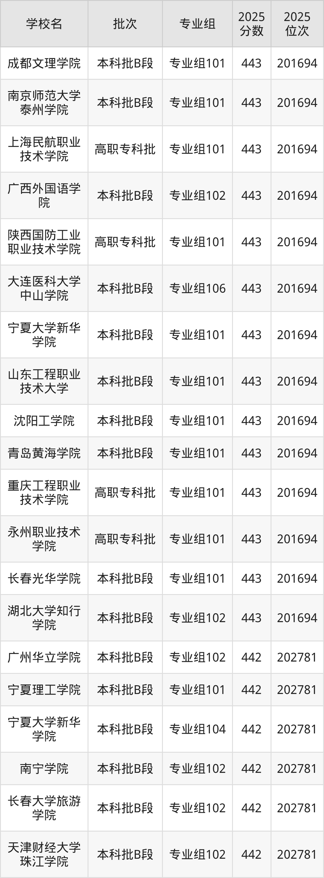 这些都是2026年高考物理类201695名~202781名考生可以报考的大学,更多学校名单如下表所示: