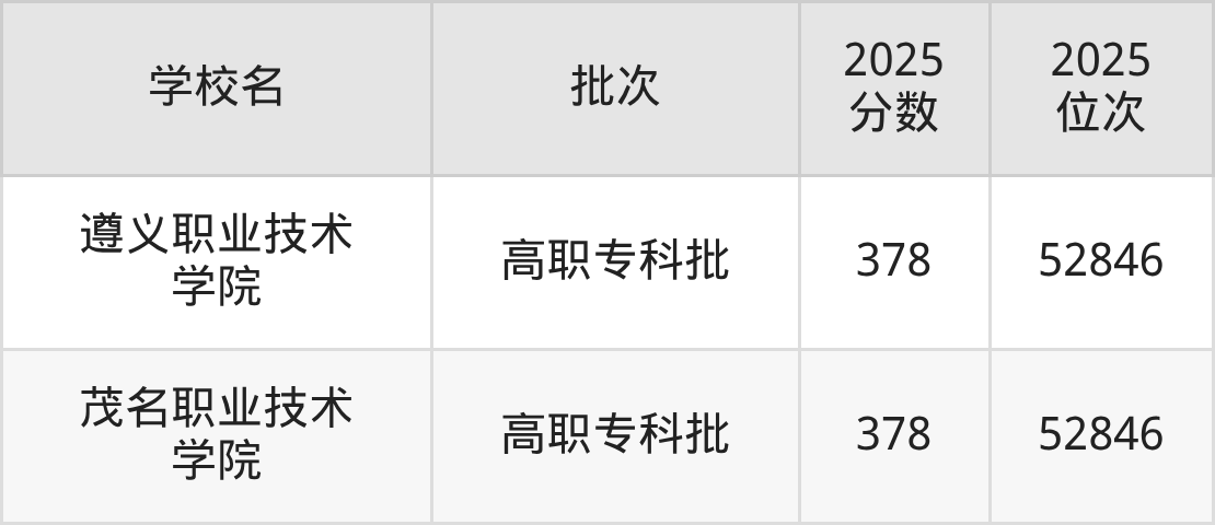 另外录取位次低于该区间(较稳妥)的有茂名职业技术学院(52846名)、永州职业技术学院(52846名)等;录取位次高于该区间(可冲)的有四川职业技术学院(52329名)、安阳职业技术学院(52329名)等。