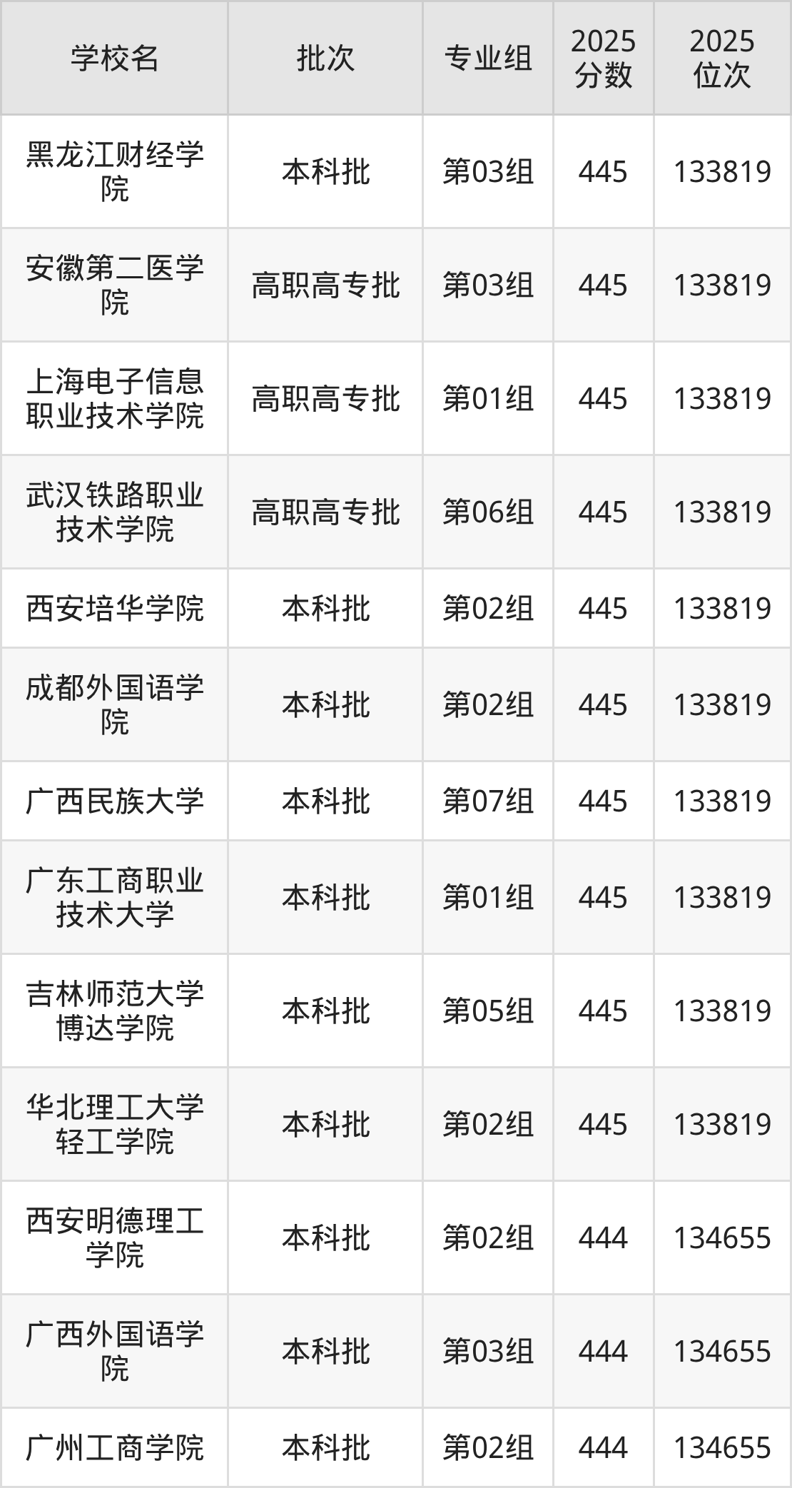 2025年湖北高考物理类444分(133820名~134655名)能上的大学有广州工商学院第02组、广西外国语学院第03组、西安明德理工学院第02组。