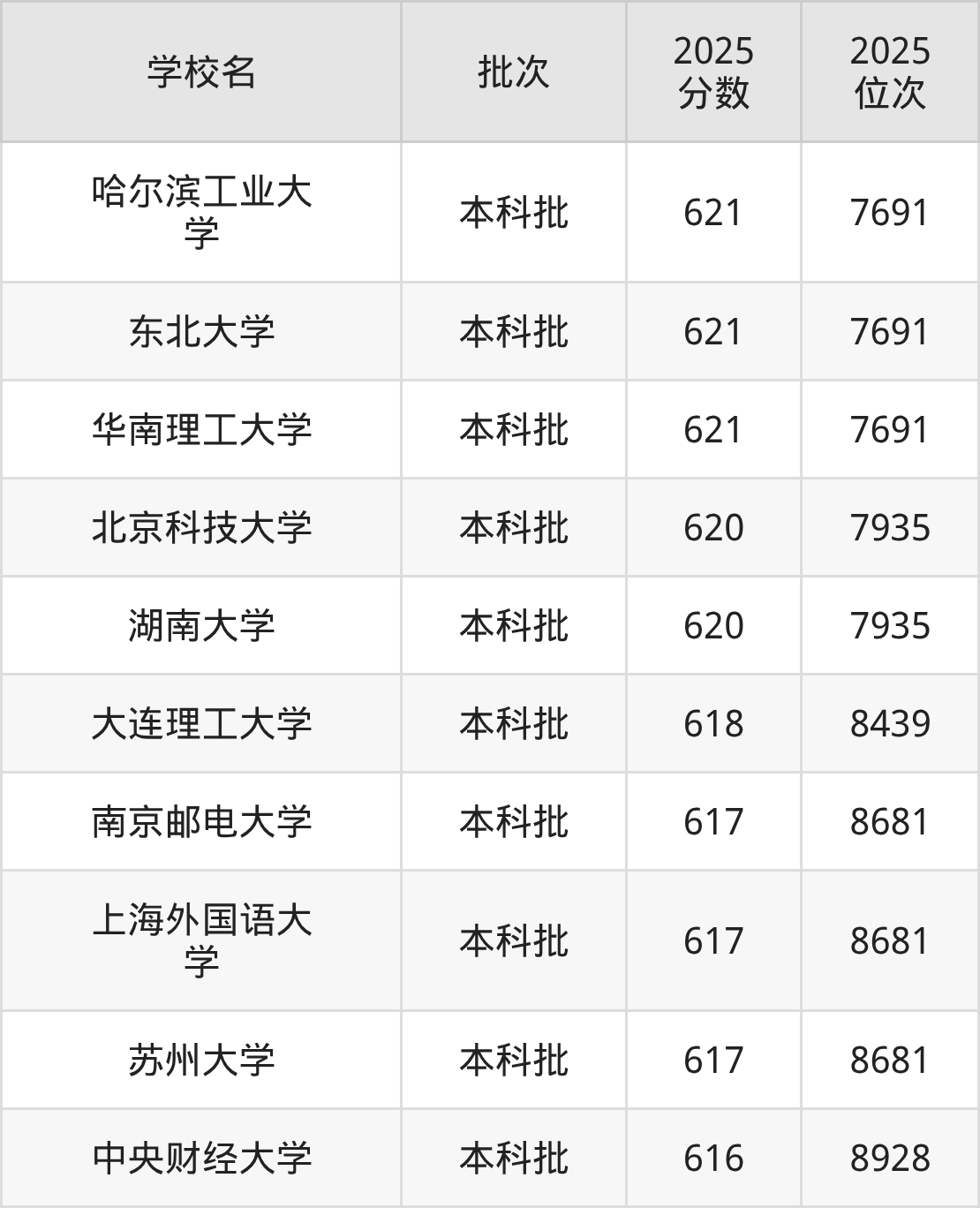 2025年辽宁高考物理类618分(8170名~8439名)能上的大学有大连理工大学。