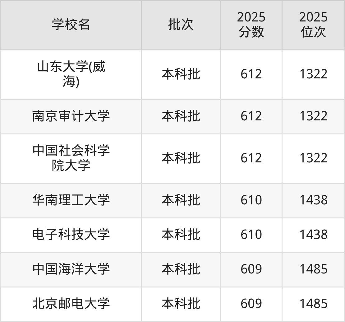 由于高考录取分数线历年波动较大,因此本文以该分数对应的位次排名为大家整理能上的大学名单。