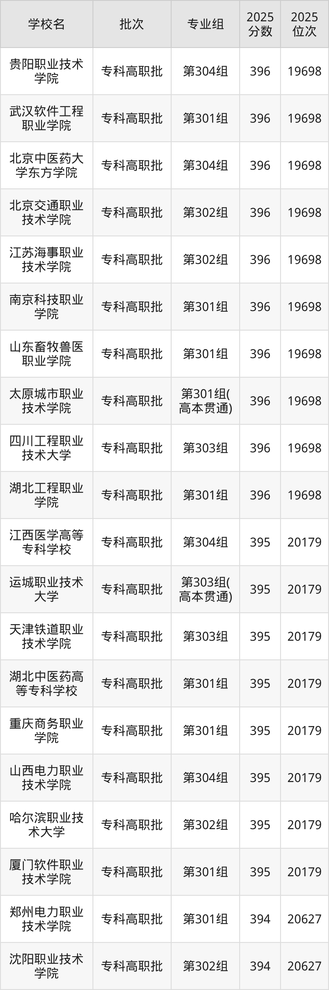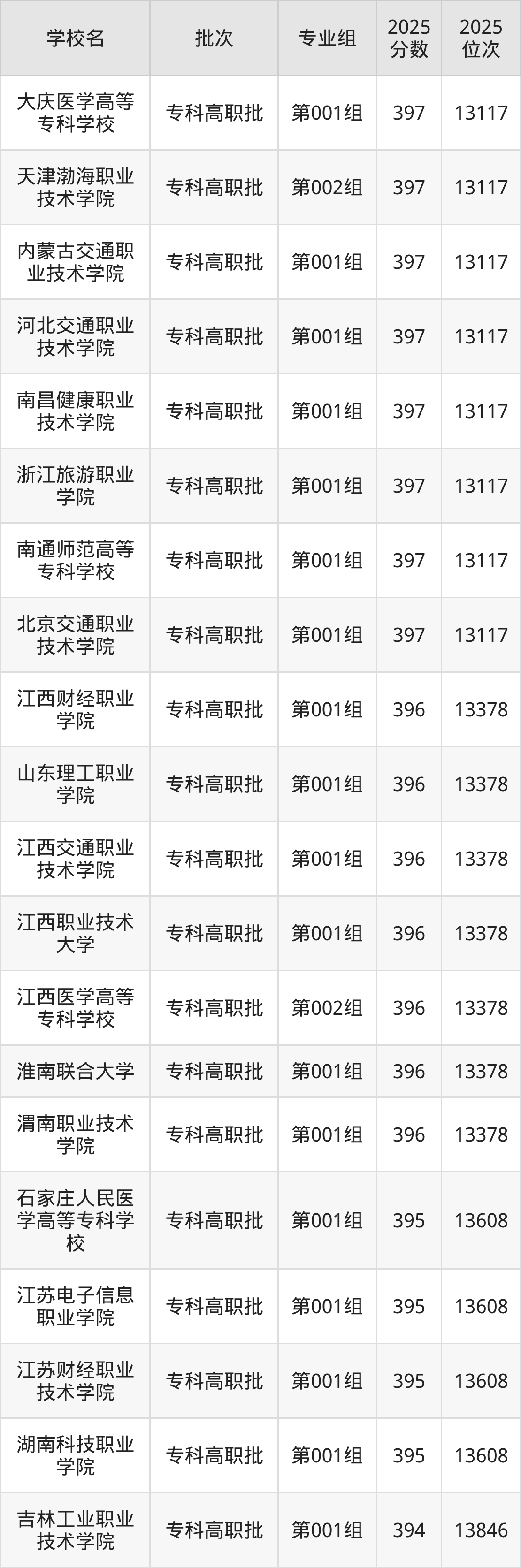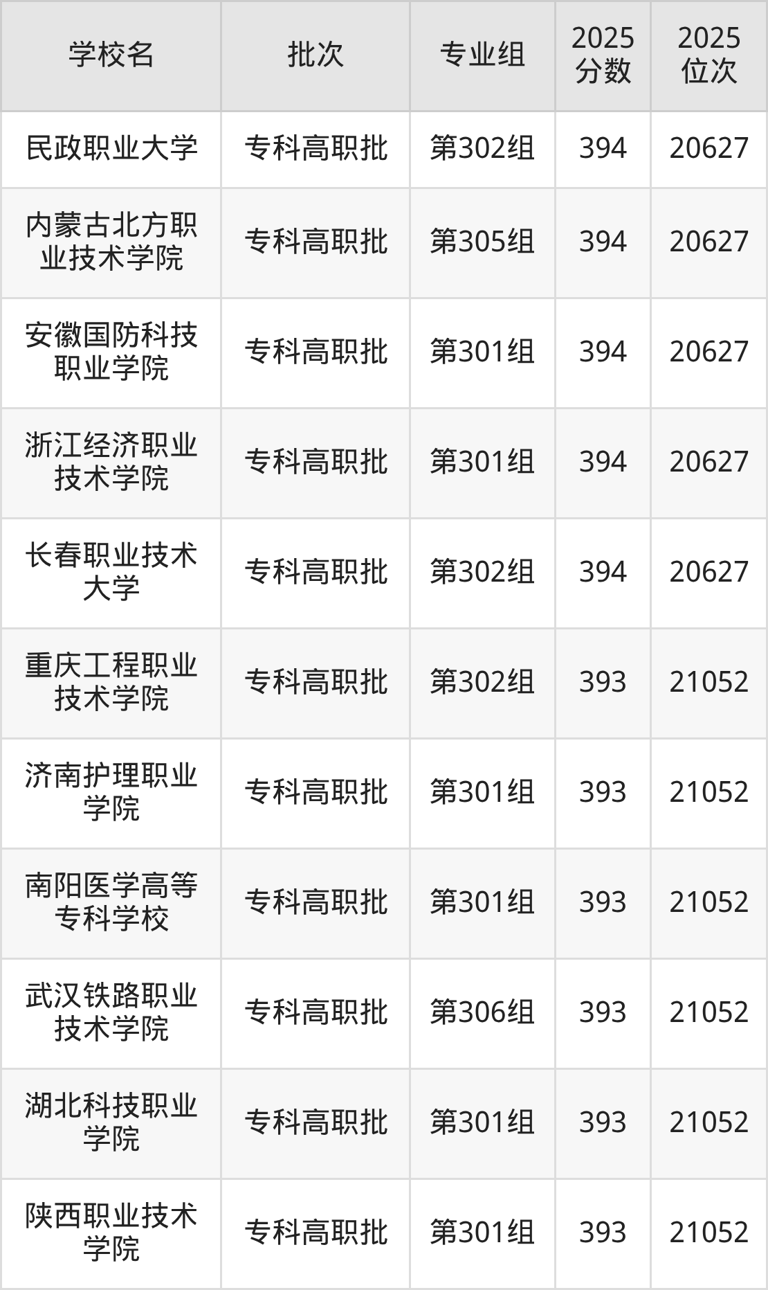 2025年山西高考物理类394分(20180名~20627名)能上的大学有民政职业大学第302组、内蒙古北方职业技术学院第305组、沈阳职业技术学院第302组、长春职业技术大学第302组等。