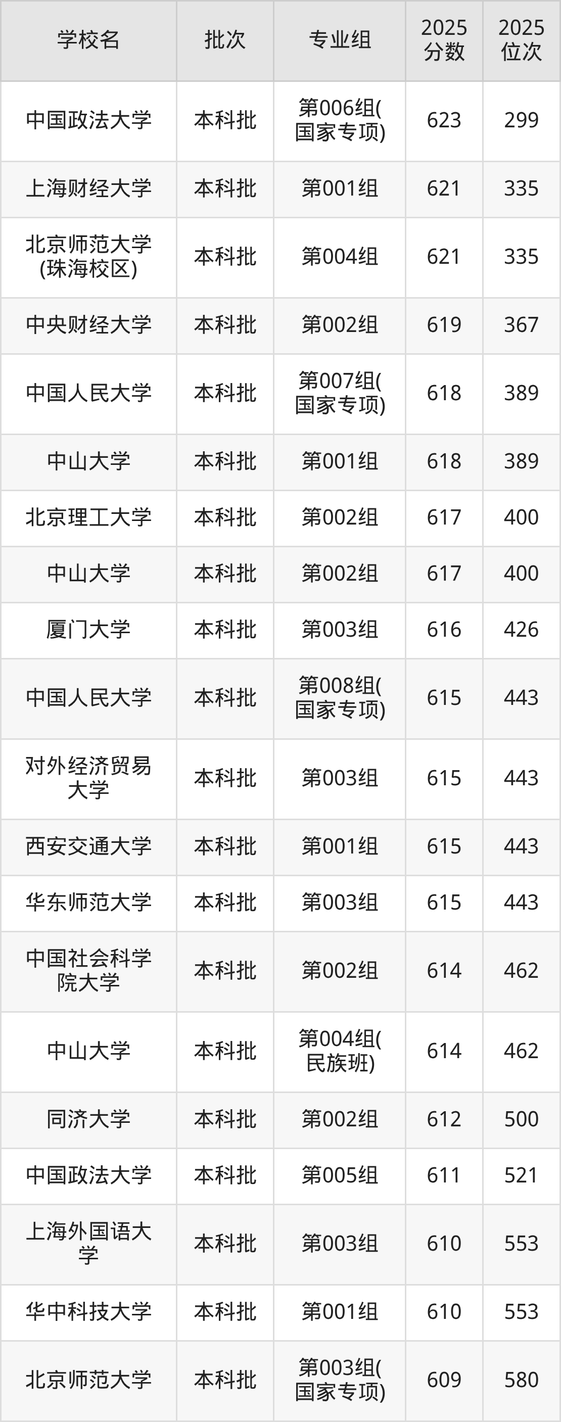 这些都是2026年高考历史类195名~204名考生可以报考的大学,更多学校名单如下表所示:
