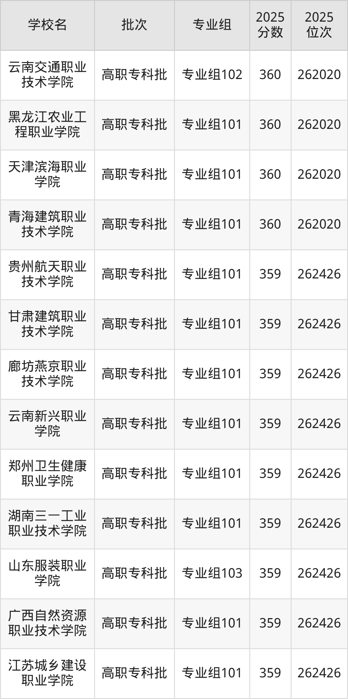 2025年四川高考物理类360分(261572名~262020名)能上的大学有云南交通职业技术学院专业组102、黑龙江农业工程职业学院专业组101、张家口职业技术学院专业组101、天津滨海职业学院专业组101等。