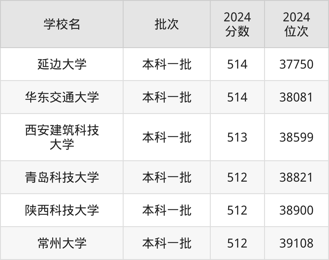 2024年陕西高考理科513分(38169名~38682名)能上的大学有西安建筑科技大学。