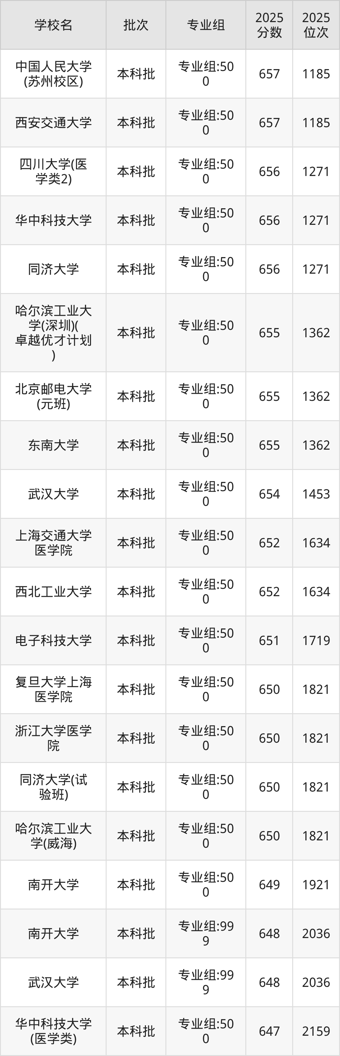 另外录取位次低于该区间(较稳妥)的有复旦大学上海医学院专业组:500(1821名)、同济大学(试验班)专业组:500(1821名)等;录取位次高于该区间(可冲)的有上海交通大学医学院专业组:500(1634名)、西北工业大学专业组:500(1634名)等。