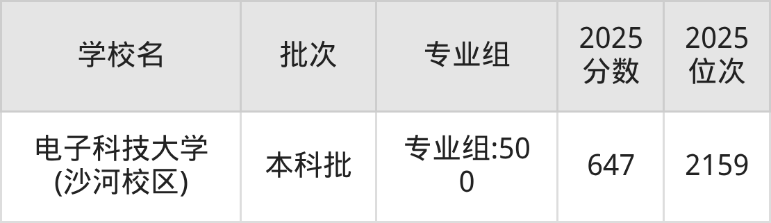 2025年福建高考物理类651分(1635名~1719名)能上的大学有电子科技大学专业组:500。