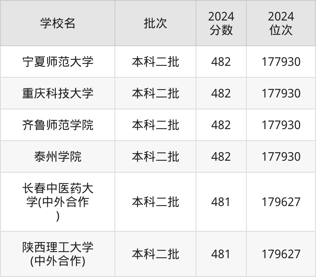 2024年河南高考理科481分(177931名~179627名)能上的大学有长春中医药大学(中外合作)、陕西理工大学(中外合作)。