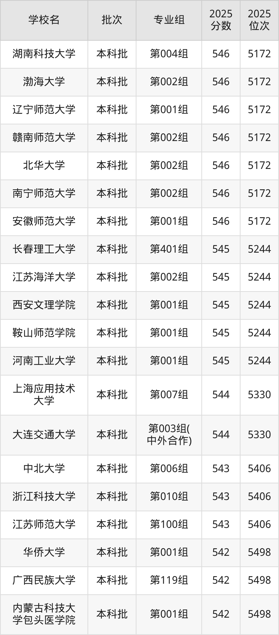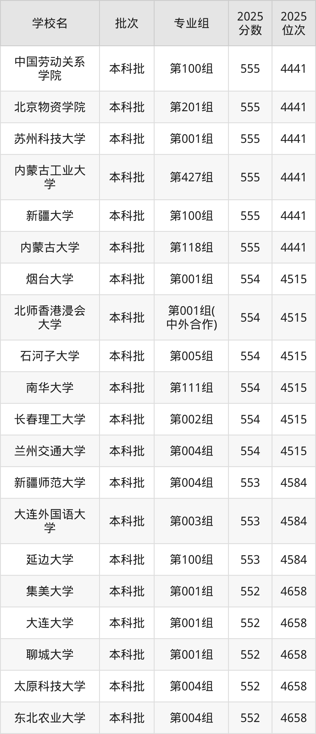 另外录取位次低于该区间(较稳妥)的有西北民族大学第003组(5092名)、内蒙古师范大学第198组(5092名)等;录取位次高于该区间(可冲)的有厦门理工学院第001组(4911名)、北京联合大学第002组(4911名)等。