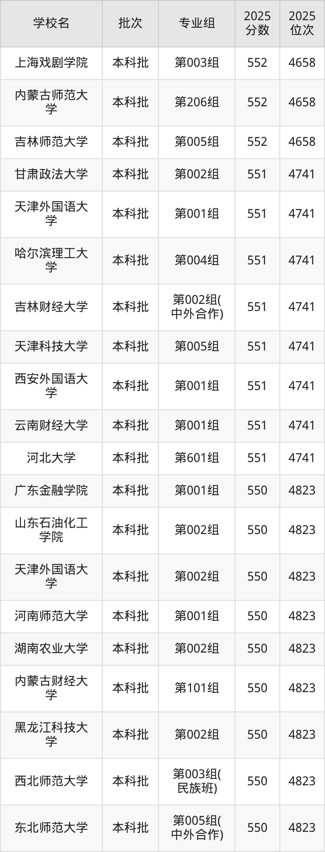 这些都是2026年高考历史类4912名~5002名考生可以报考的大学,更多学校名单如下表所示:
