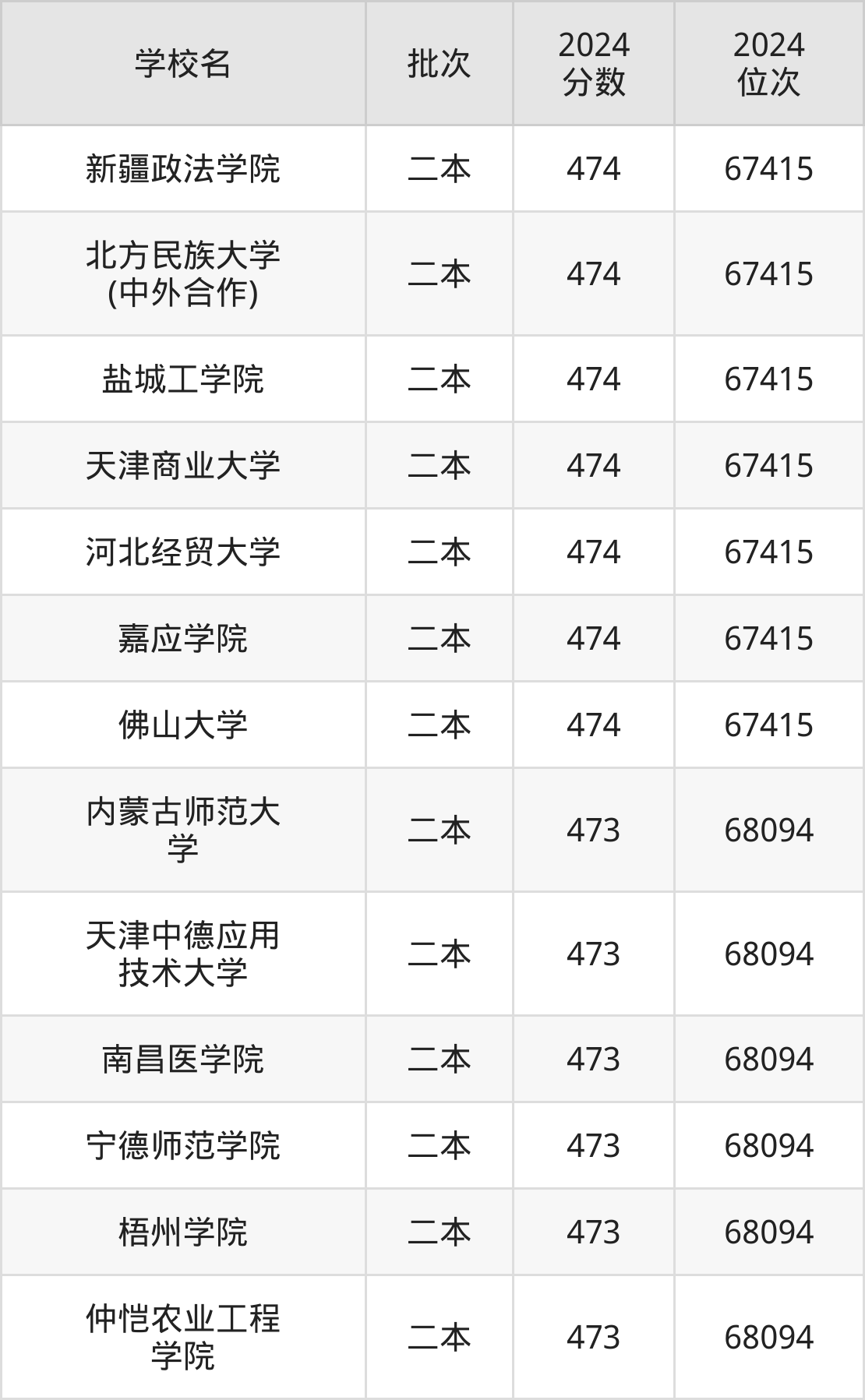 这些都是2025年高考理科67416名~68094名考生可以报考的大学,更多学校名单如下表所示: