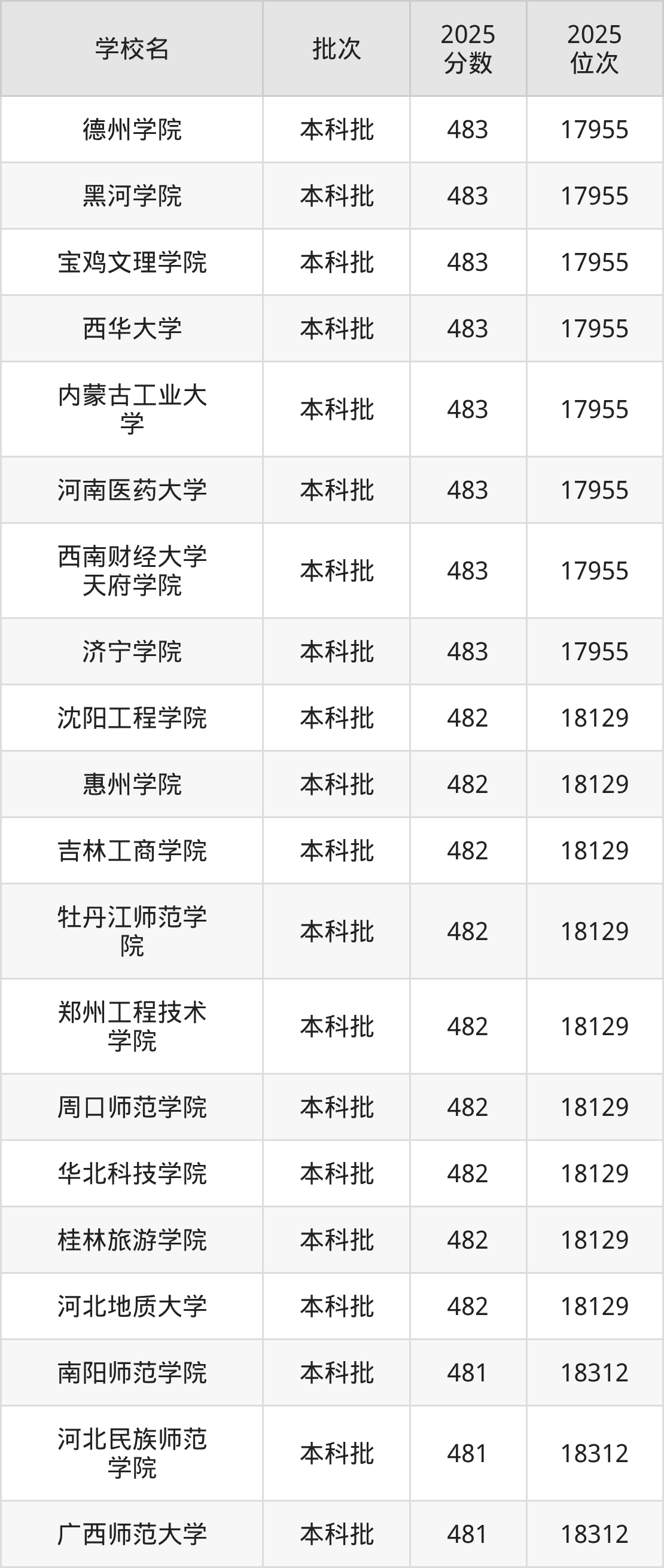 这些都是2026年高考历史类18313名~18517名考生可以报考的大学,更多学校名单如下表所示:
