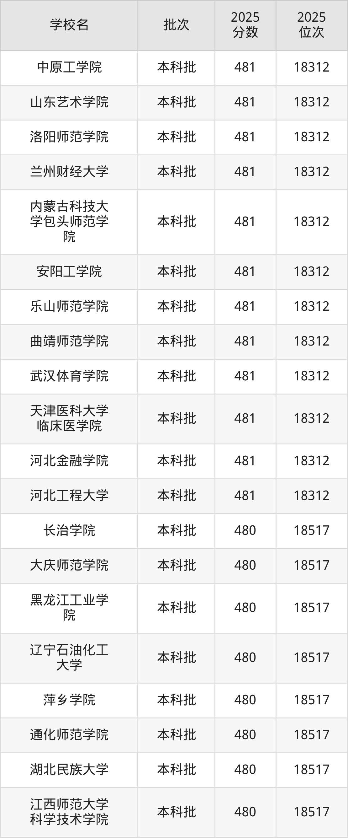 2025年辽宁高考历史类480分(18313名~18517名)能上的大学有辽宁石油化工大学、长治学院、萍乡学院、昌吉学院等。