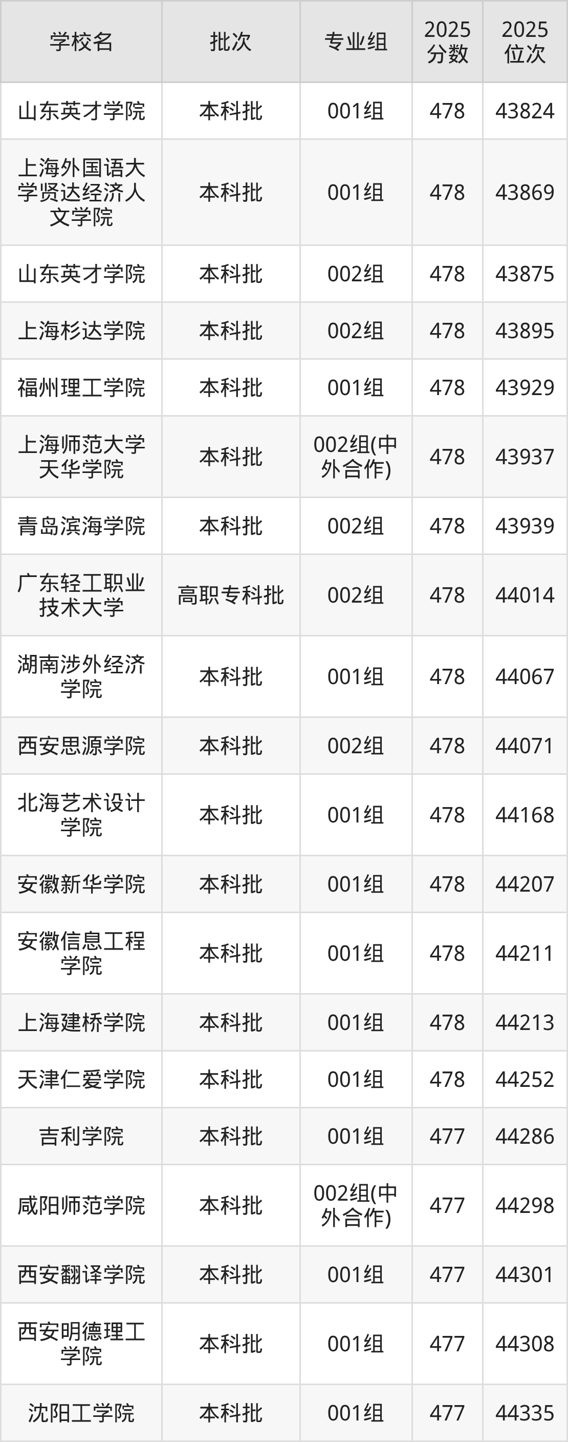 这些都是2026年高考历史类44262名~44750名考生可以报考的大学,更多学校名单如下表所示: