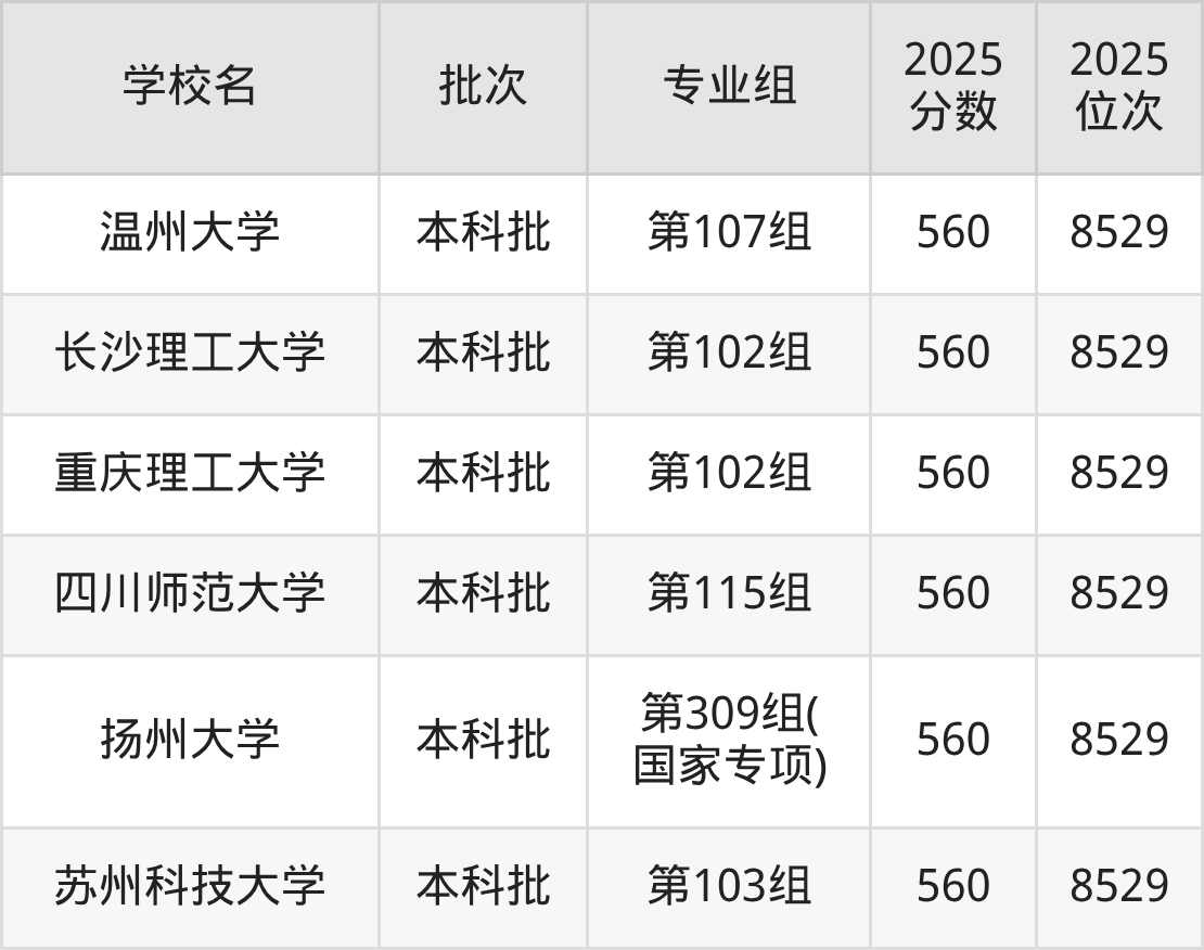这些都是2026年高考历史类7954名~8121名考生可以报考的大学,更多学校名单如下表所示: