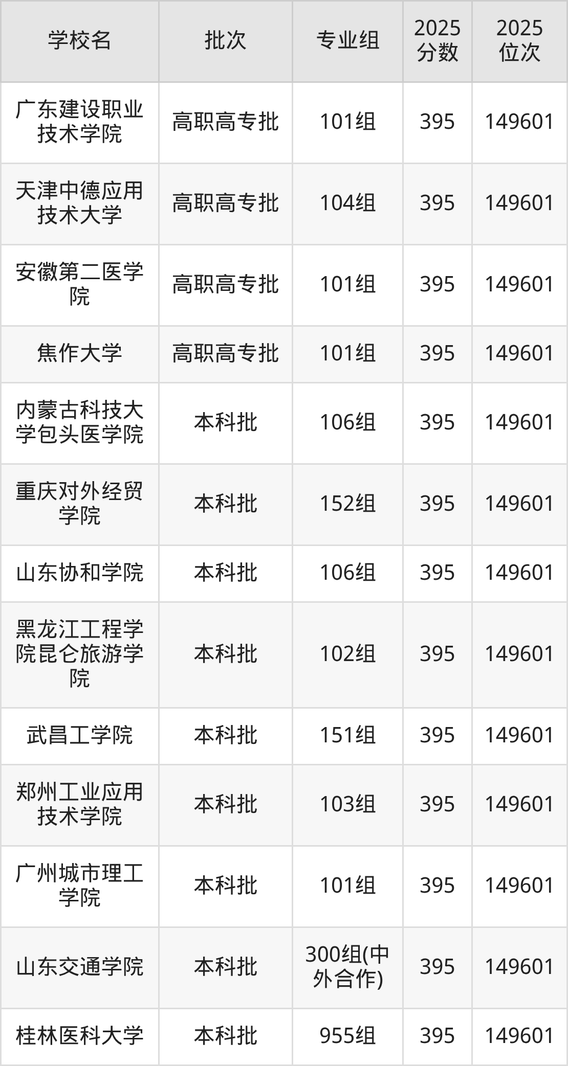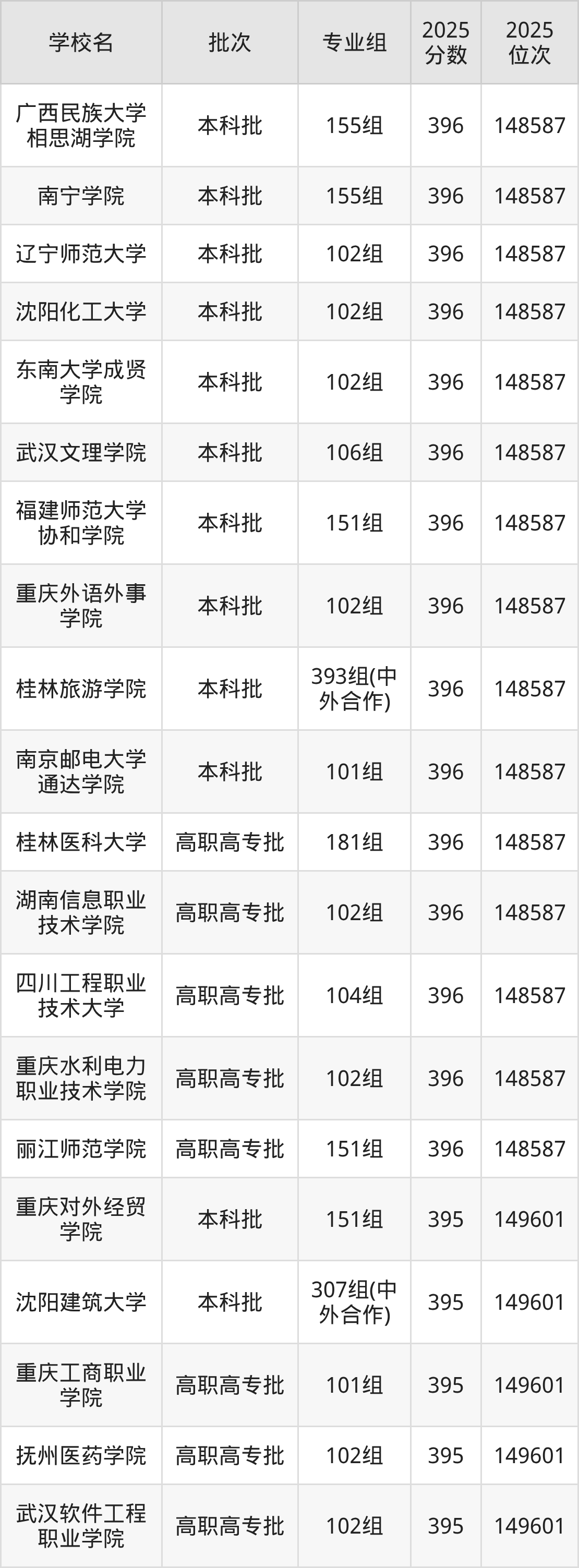 2025年广西高考物理类395分(148588名~149601名)能上的大学有沈阳建筑大学307组(中外合作)、桂林医科大学955组、山东交通学院300组(中外合作)、广州城市理工学院101组等。