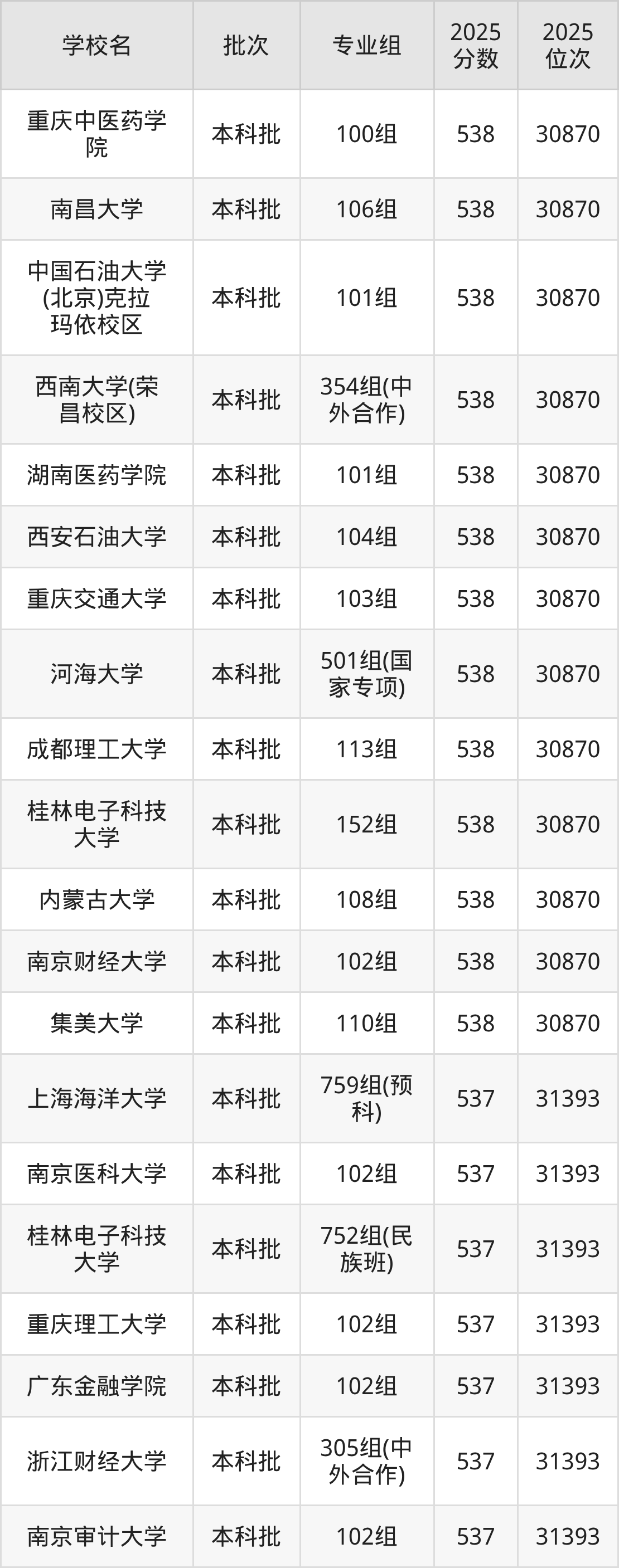 这些都是2026年高考物理类30871名~31393名考生可以报考的大学,更多学校名单如下表所示: