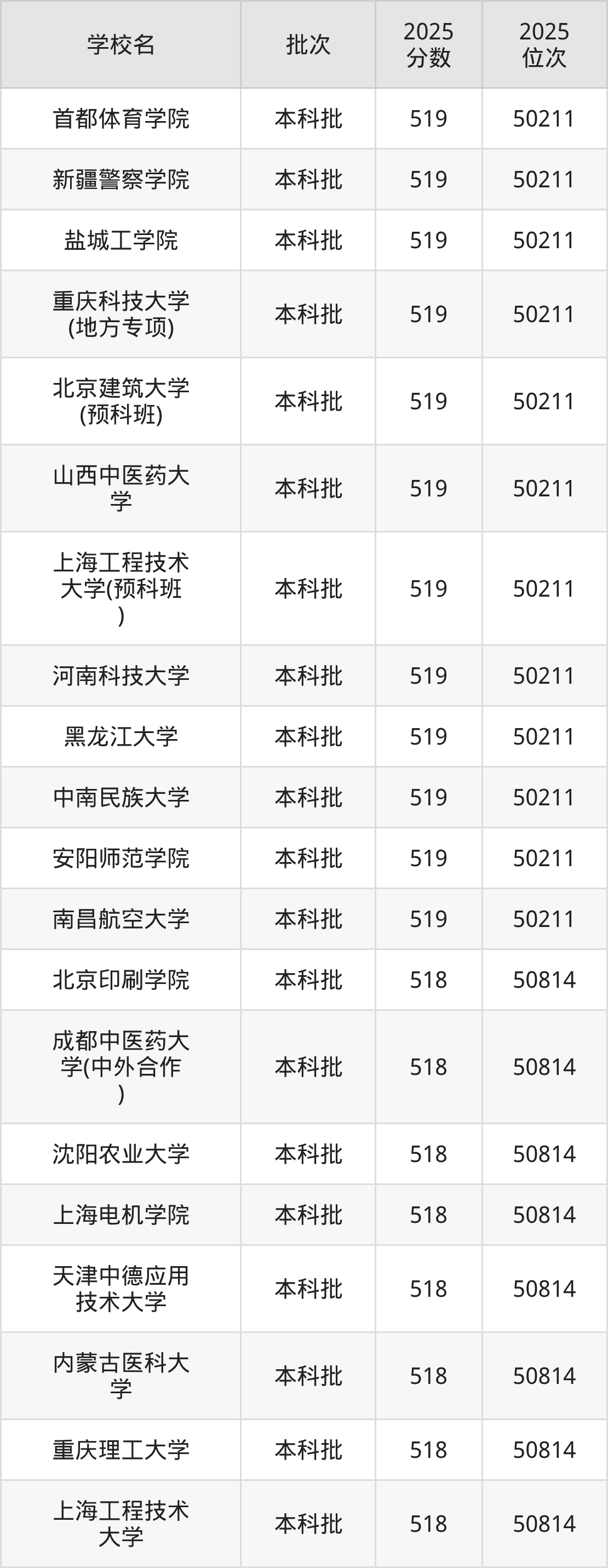 2025年重庆高考物理类518分(50212名~50814名)能上的大学有北京印刷学院、重庆理工大学、内蒙古医科大学、天津中德应用技术大学等。