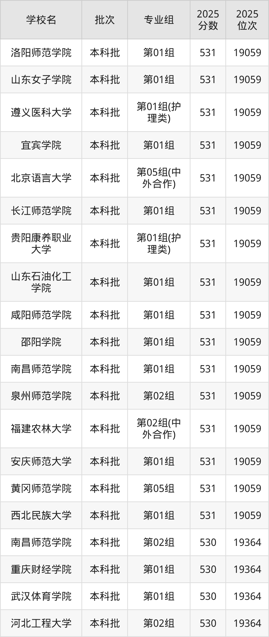 另外录取位次低于该区间(较稳妥)的有重庆文理学院第01组(19971名)、玉林师范学院第01组(19971名)等;录取位次高于该区间(可冲)的有韶关学院第04组(19364名)、山东第一医科大学第01组(19364名)等。