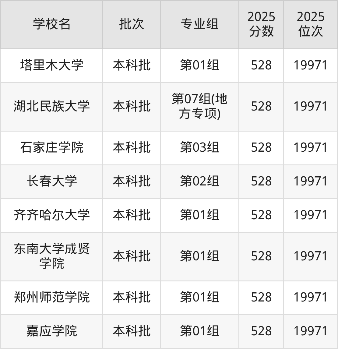 这些都是2026年高考历史类19365名~19669名考生可以报考的大学,更多学校名单如下表所示: