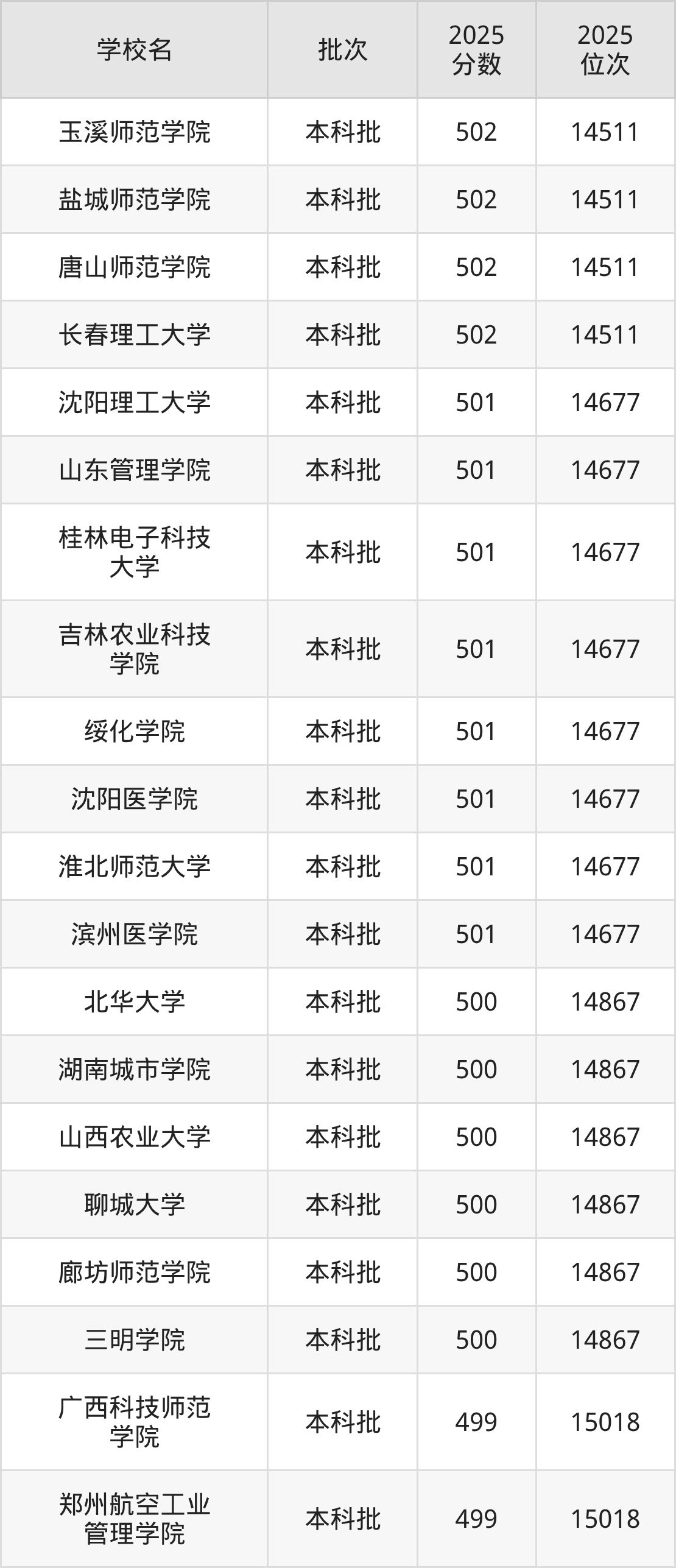 2025年辽宁高考历史类499分(14868名~15018名)能上的大学有广西科技师范学院、郑州航空工业管理学院。
