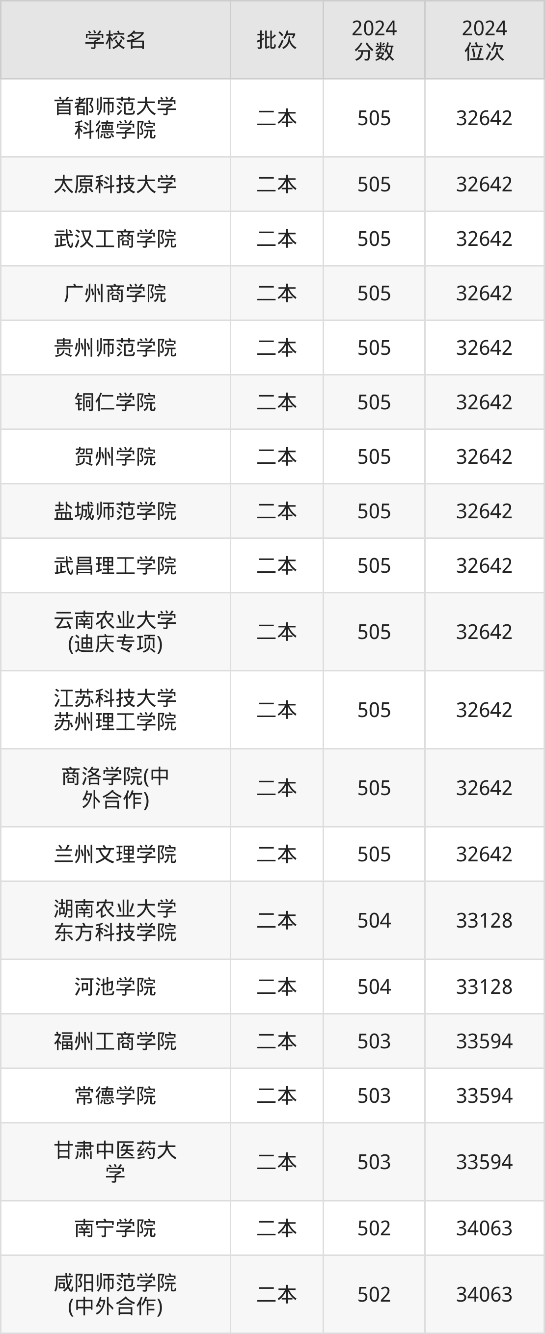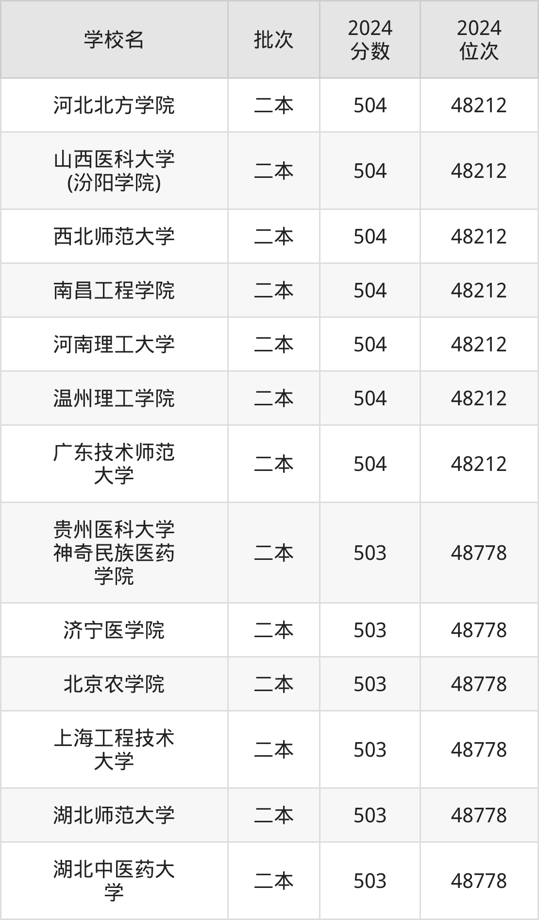 2024年云南高考理科503分(48213名~48778名)能上的大学有湖北师范大学、贵州医科大学神奇民族医药学院、北京农学院、湖北中医药大学等。