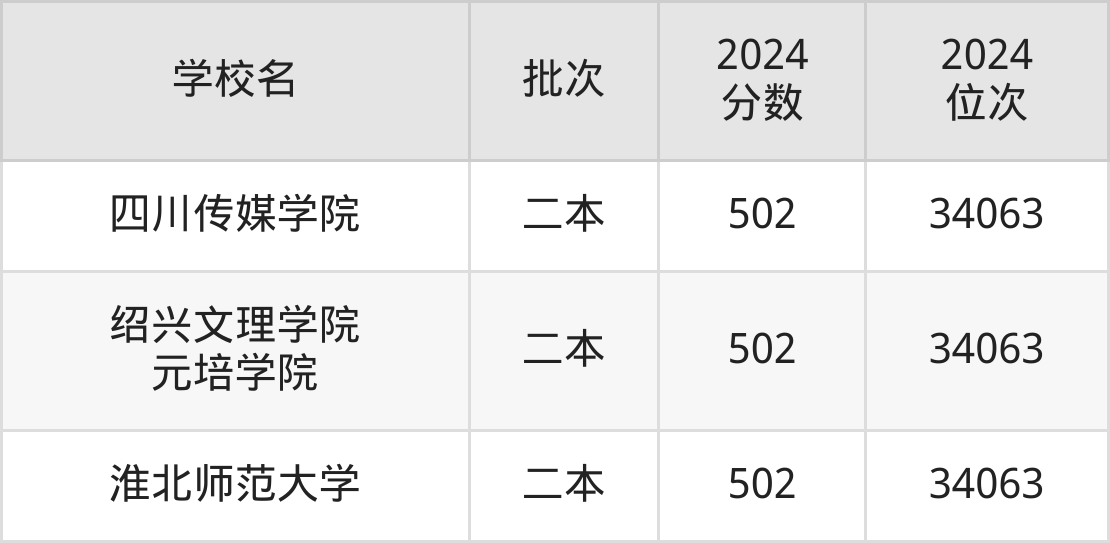 这些都是2025年高考文科33129名~33594名考生可以报考的大学,更多学校名单如下表所示: