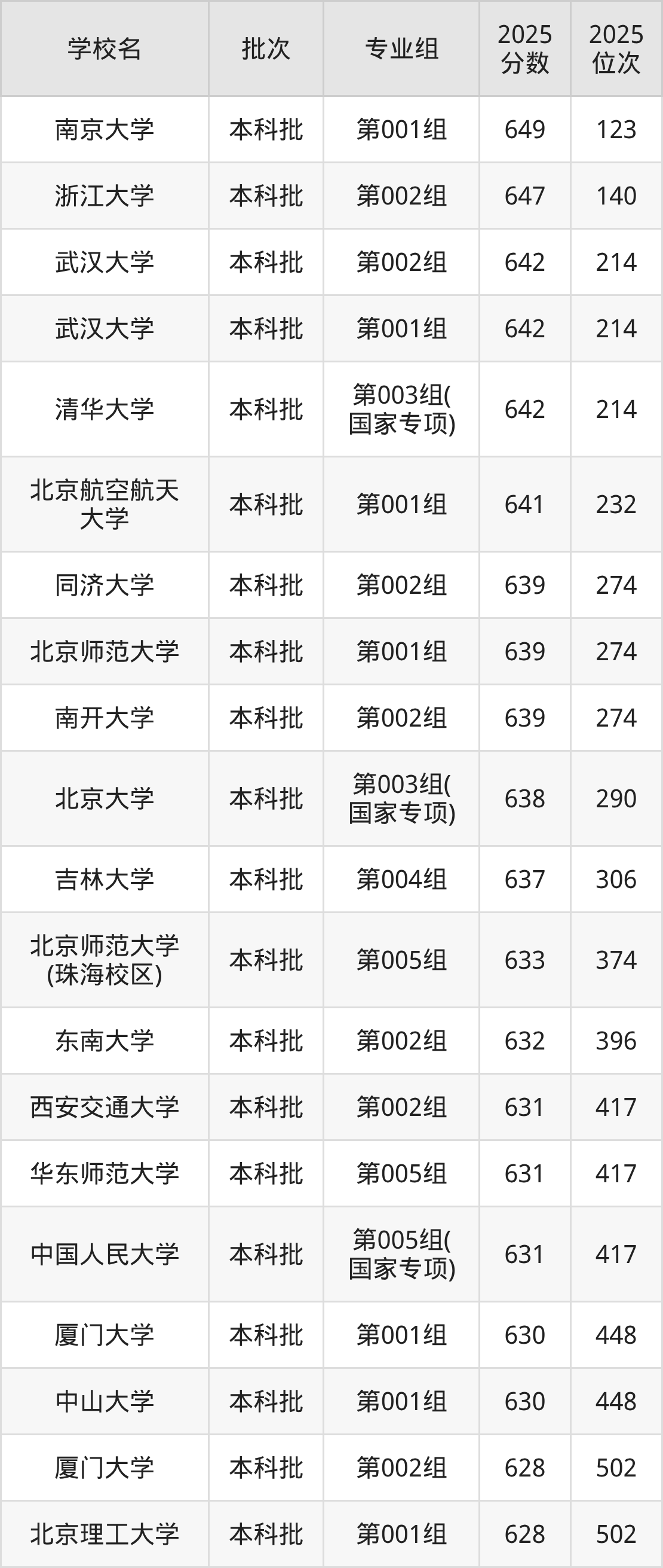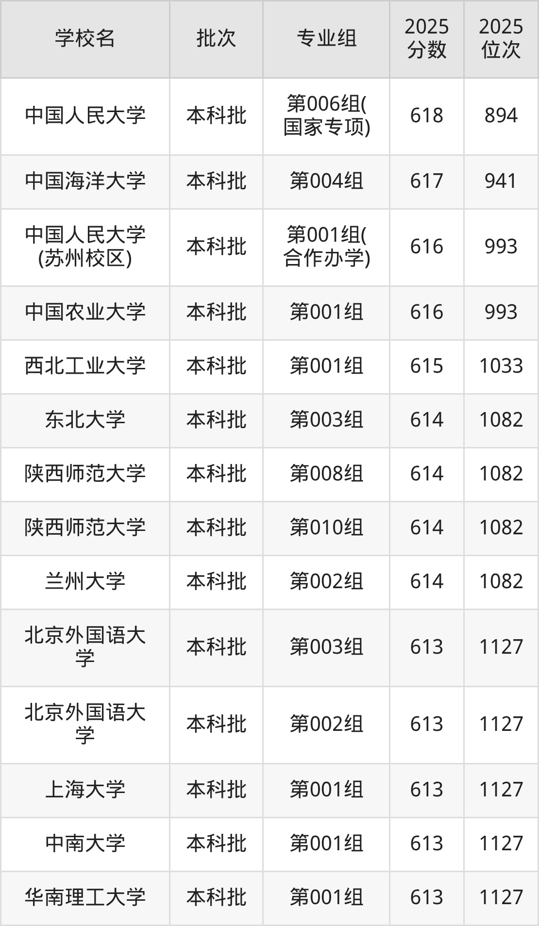 这些都是2026年高考历史类612名~649名考生可以报考的大学,更多学校名单如下表所示: