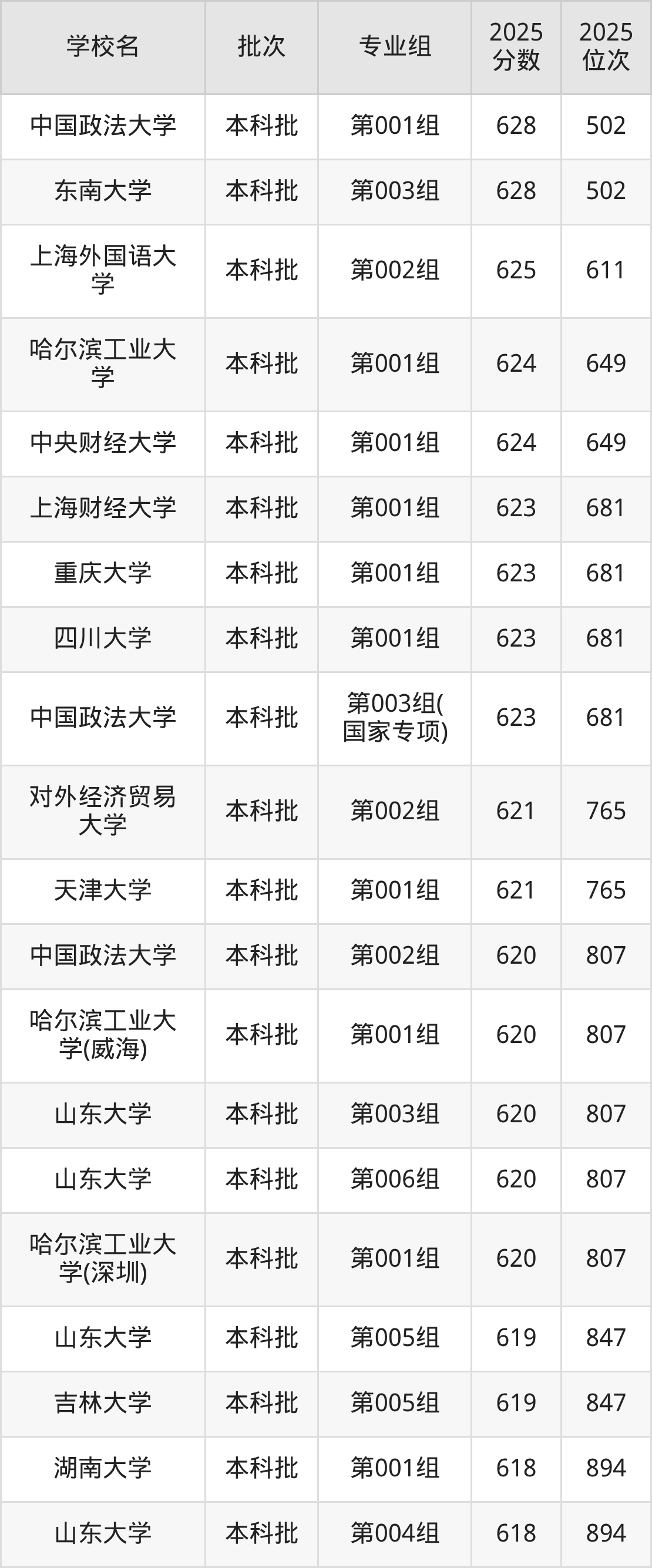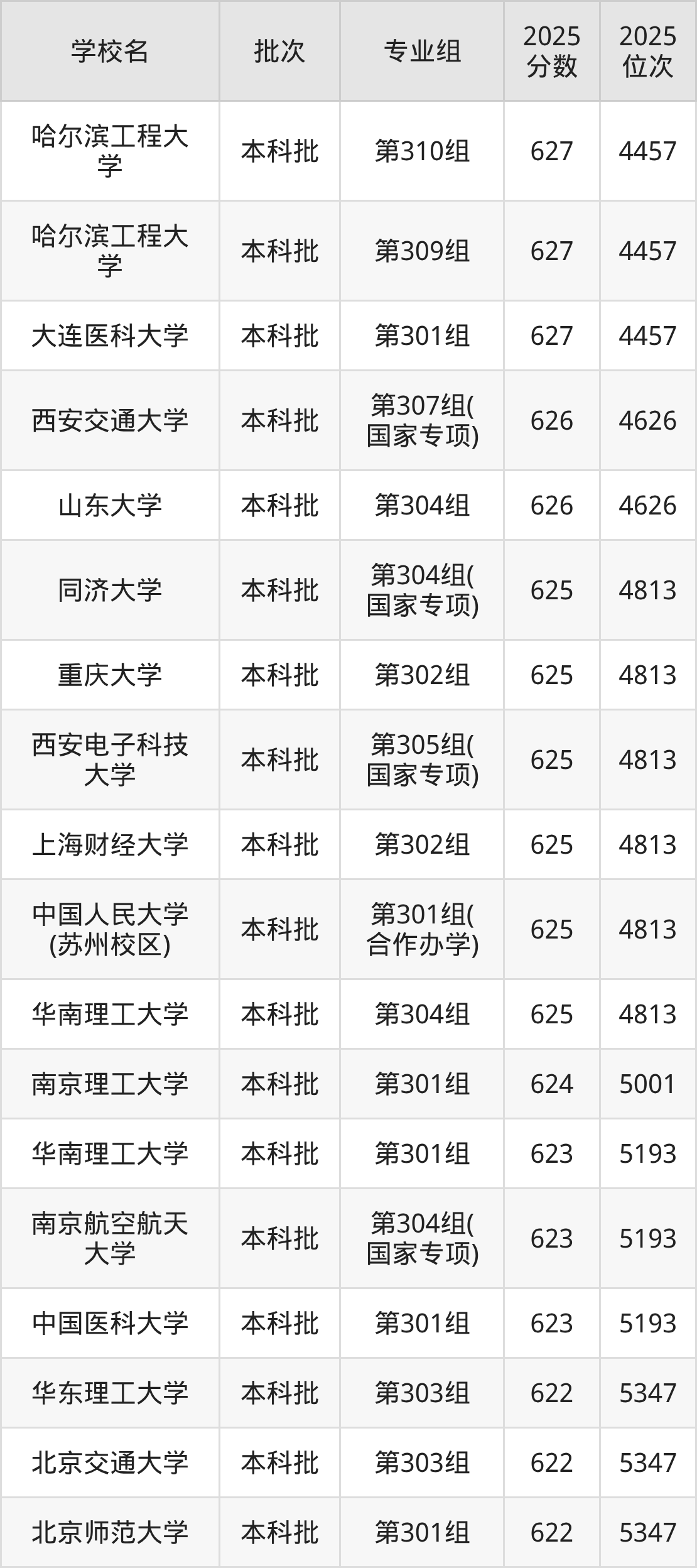 2025年山西高考历史类624分(612名~649名)能上的大学有中央财经大学第001组、哈尔滨工业大学第001组。