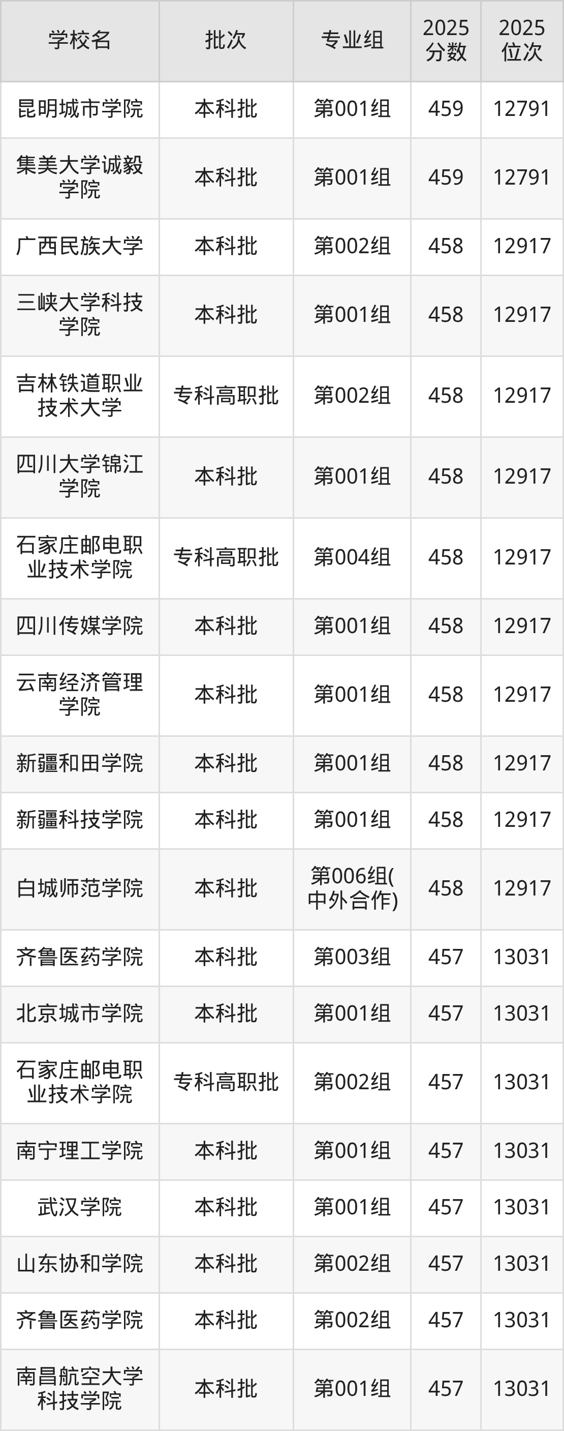 这些都是2026年高考历史类12569名~12678名考生可以报考的大学,更多学校名单如下表所示: