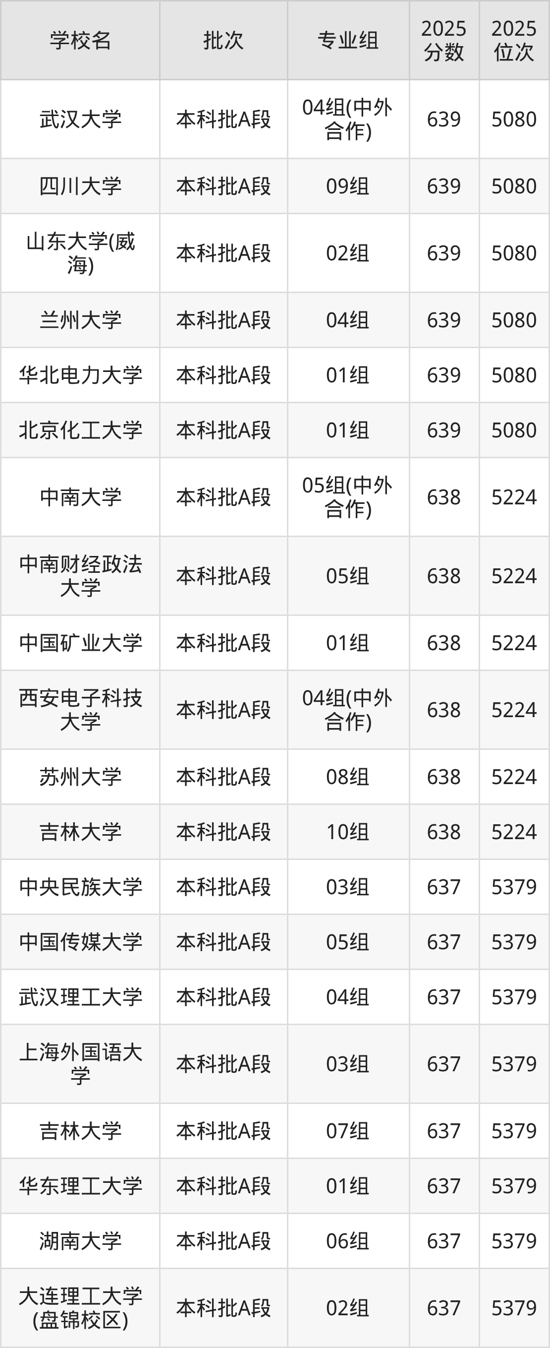 这些都是2026年高考5536名~5689名考生可以报考的大学,更多学校名单如下表所示: